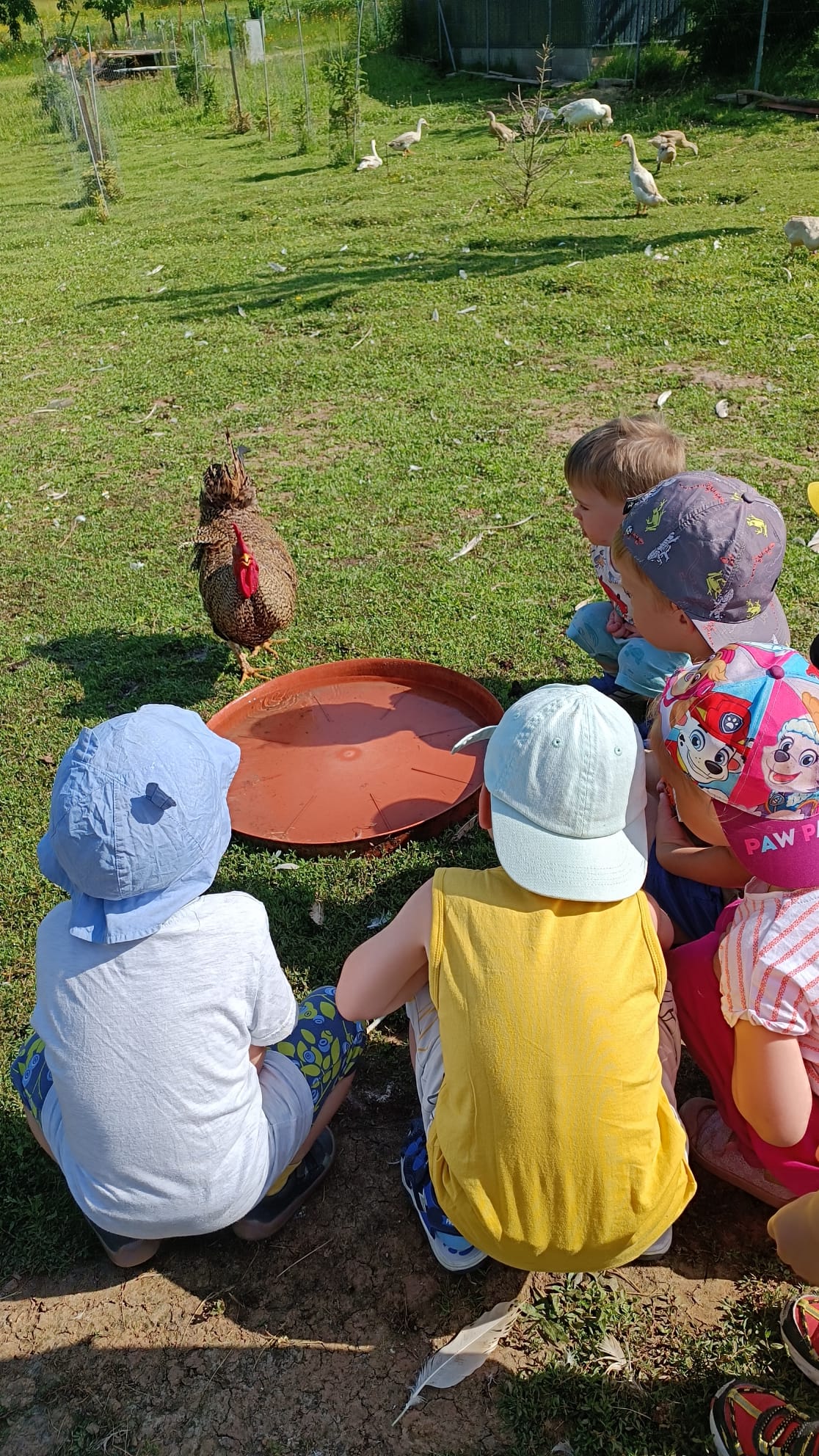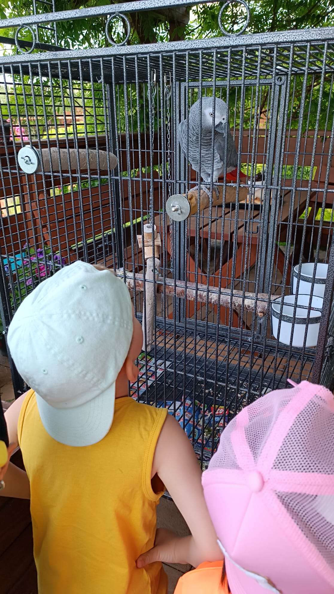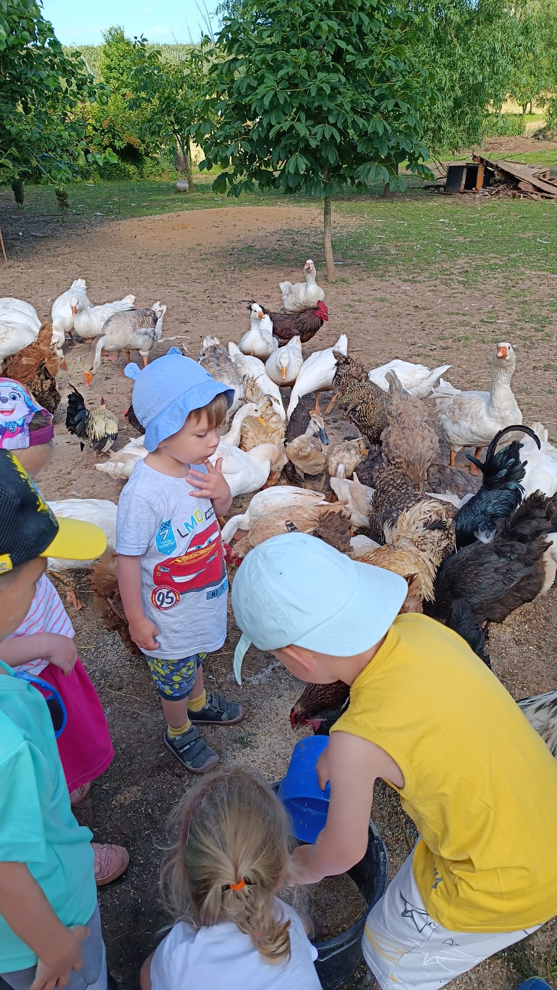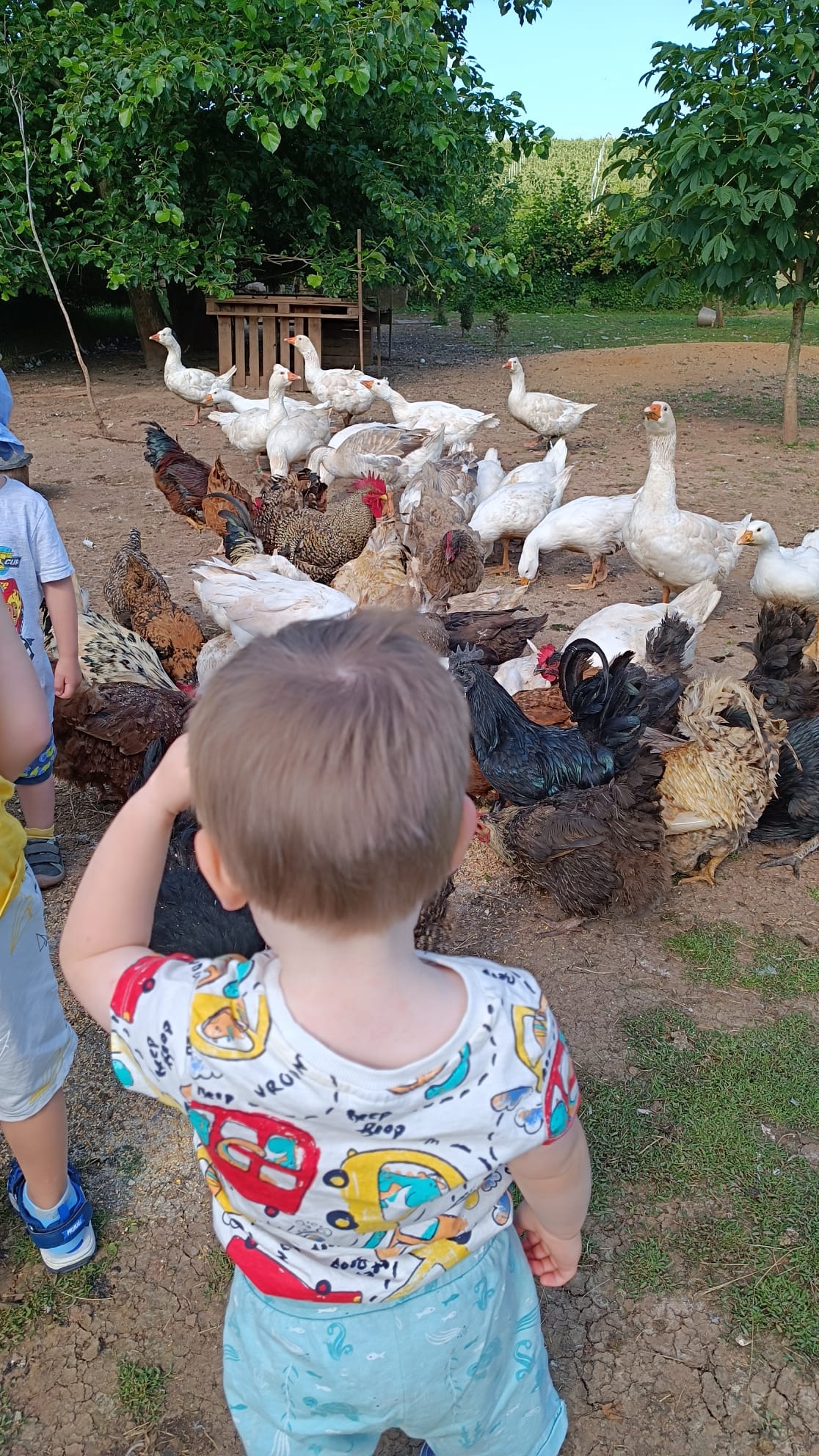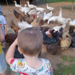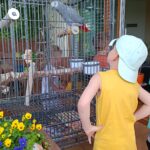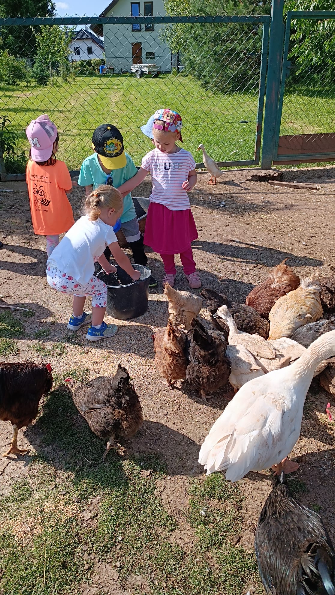 Další výlet byl jen o vesnici dál. K naší Eví do Tatobit, protože má doma mini zoo. Slepice, kachny, husy, králíky, psa, kočku, jezírko plné ryb, a hlavně papoušky. A mluví!