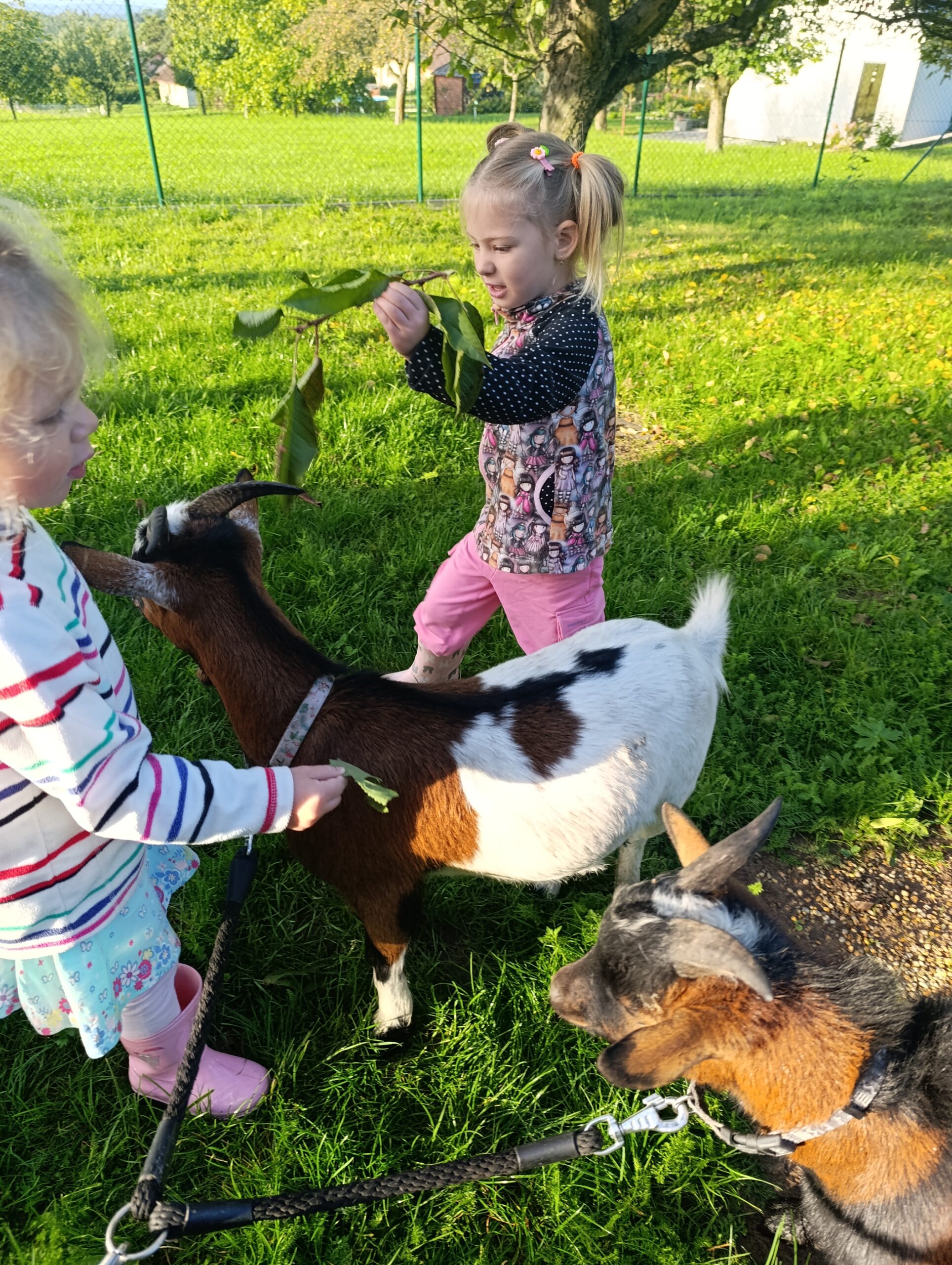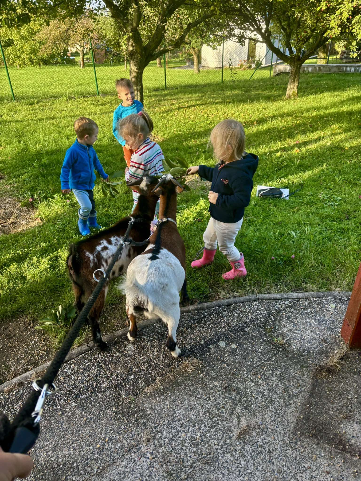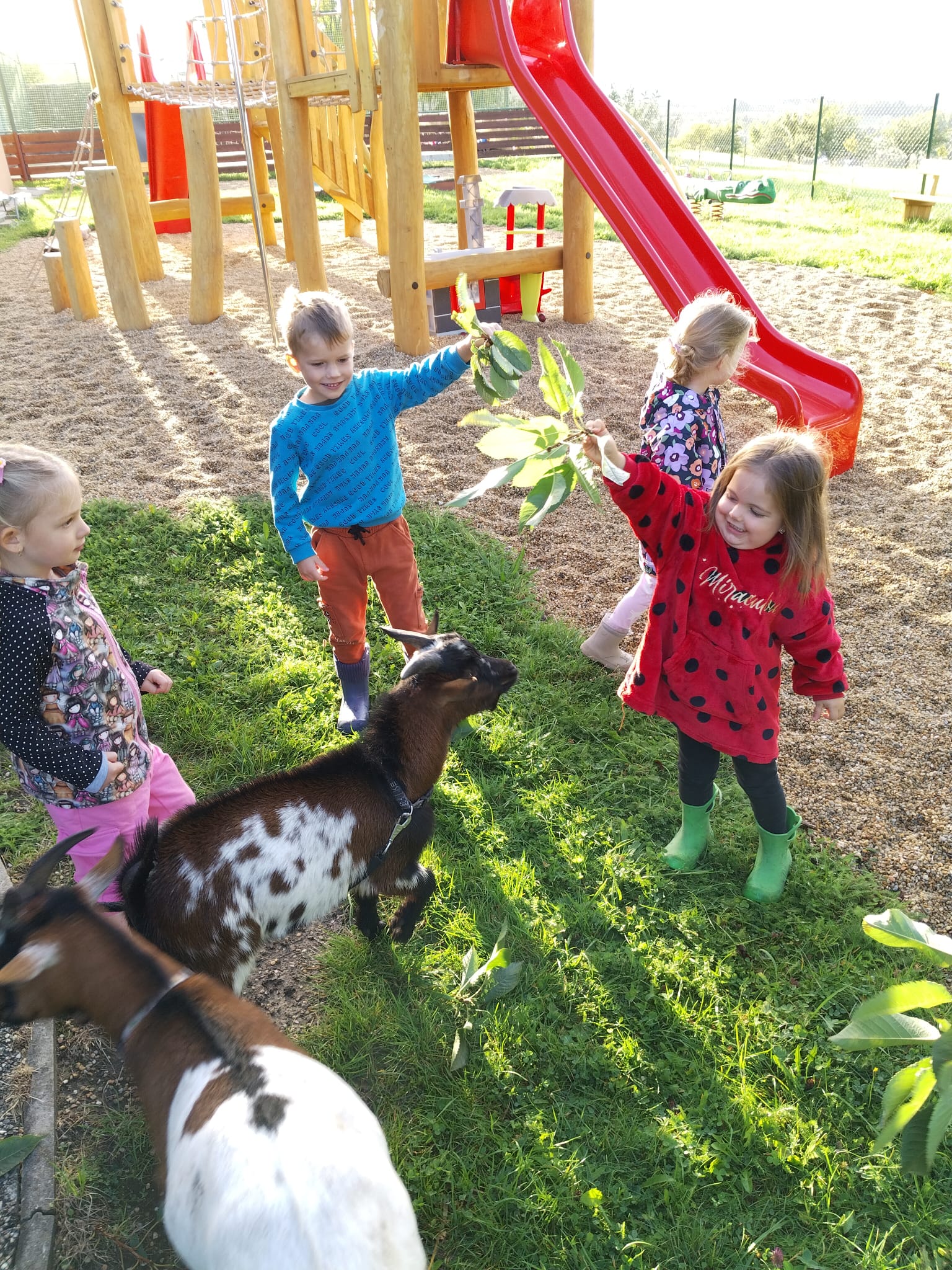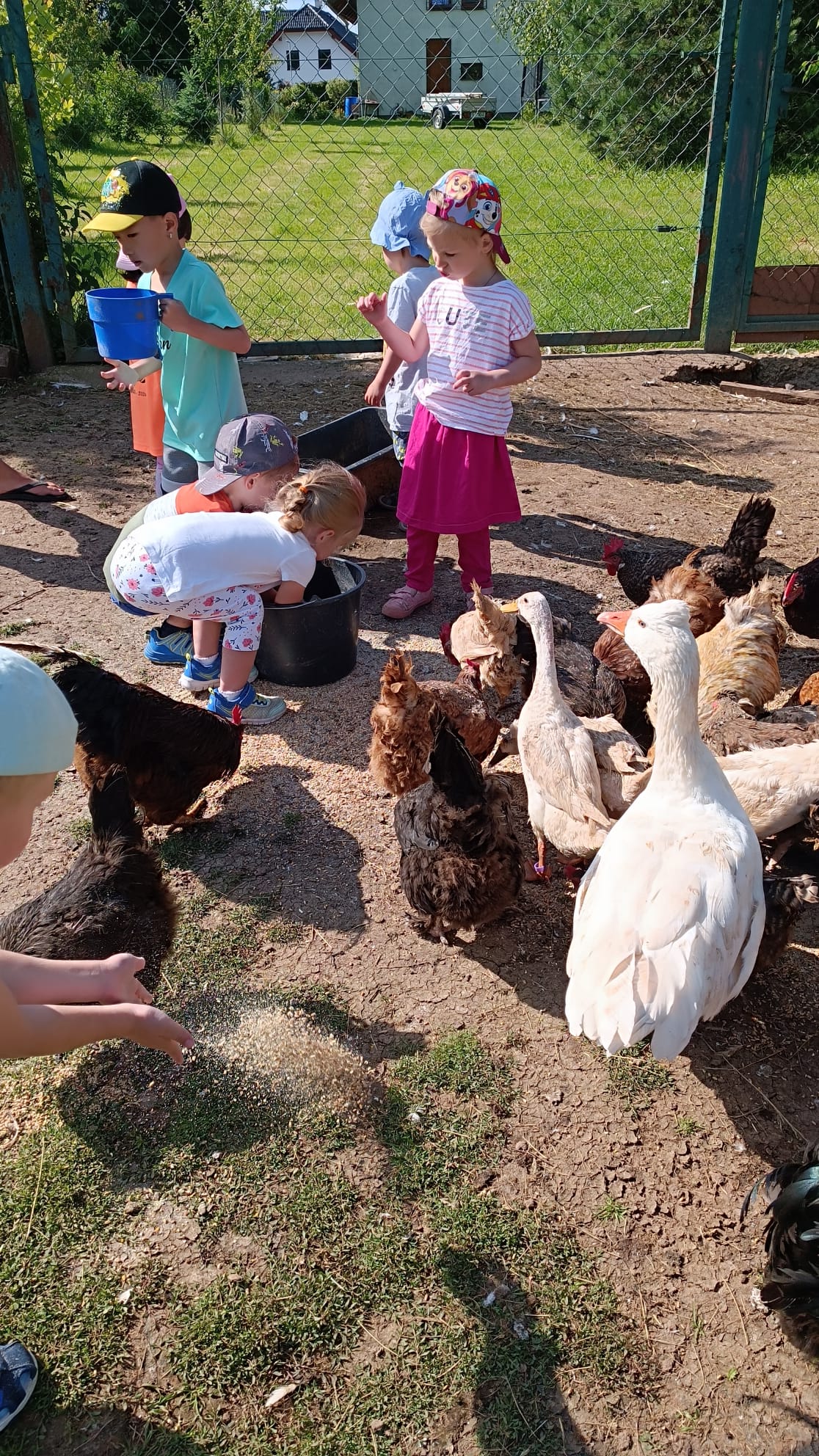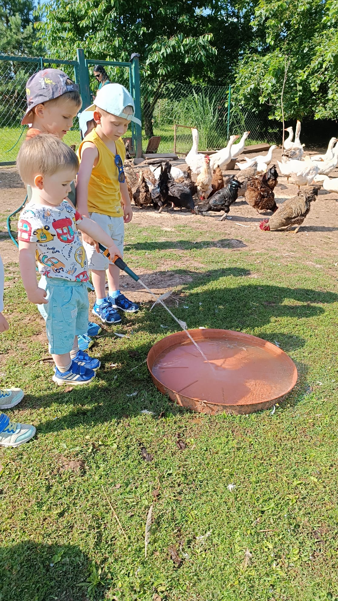 Další výlet byl jen o vesnici dál. K naší Eví do Tatobit, protože má doma mini zoo. Slepice, kachny, husy, králíky, psa, kočku, jezírko plné ryb, a hlavně papoušky. A mluví!