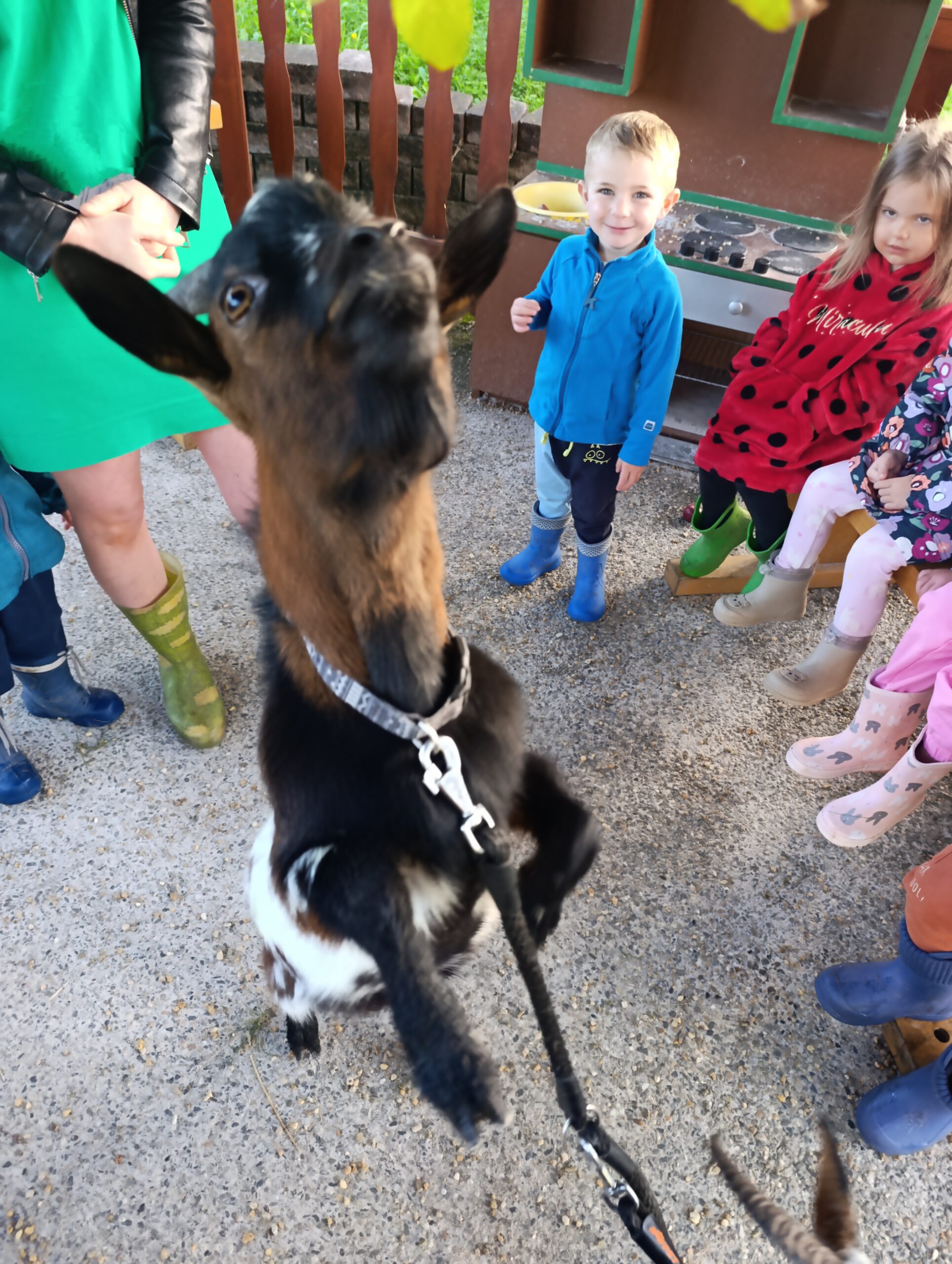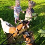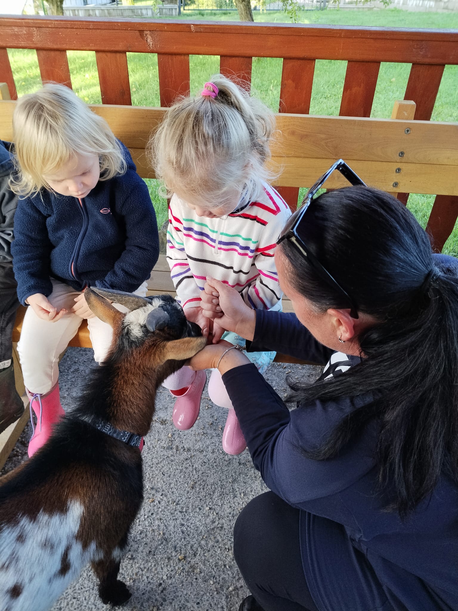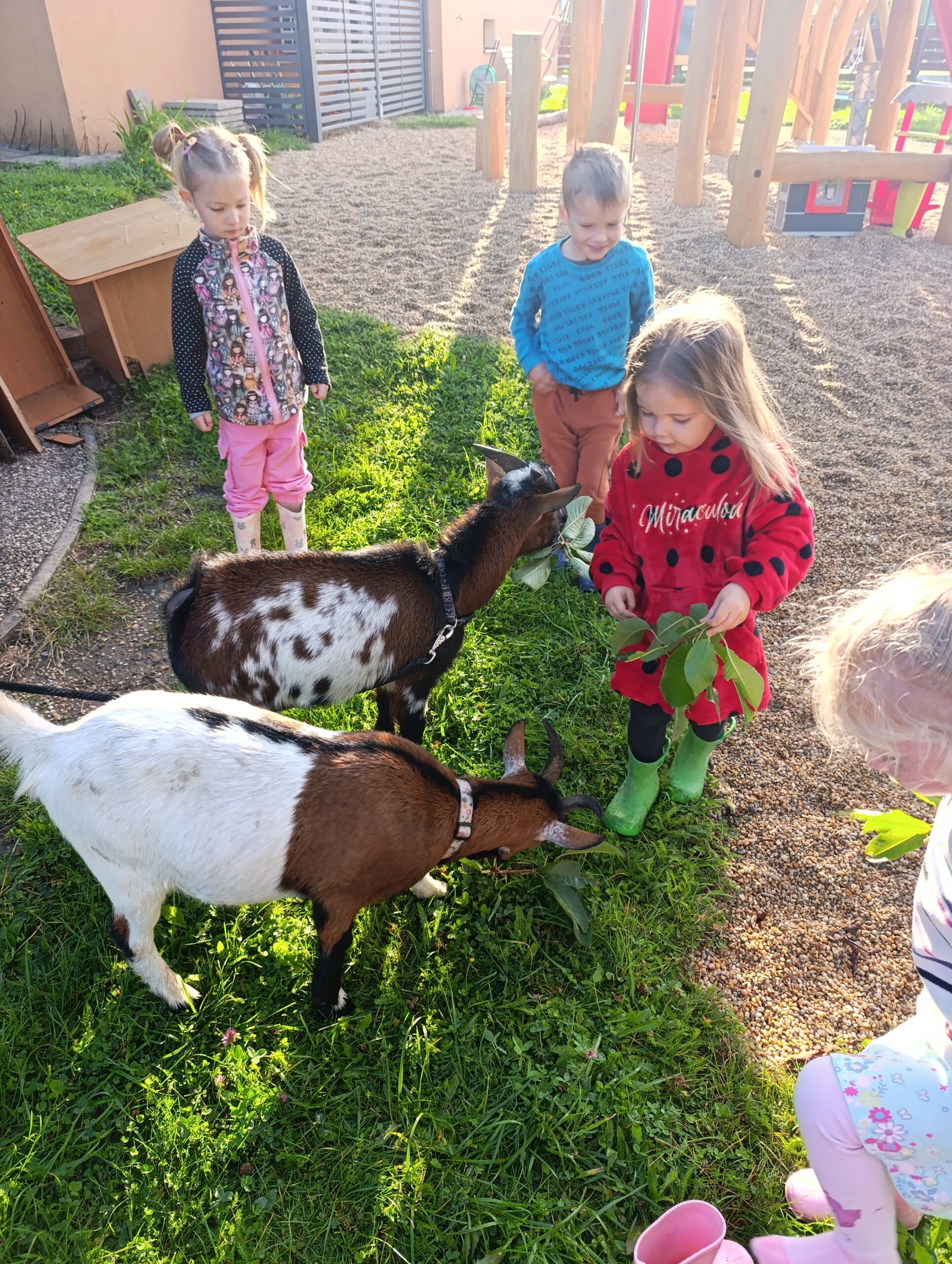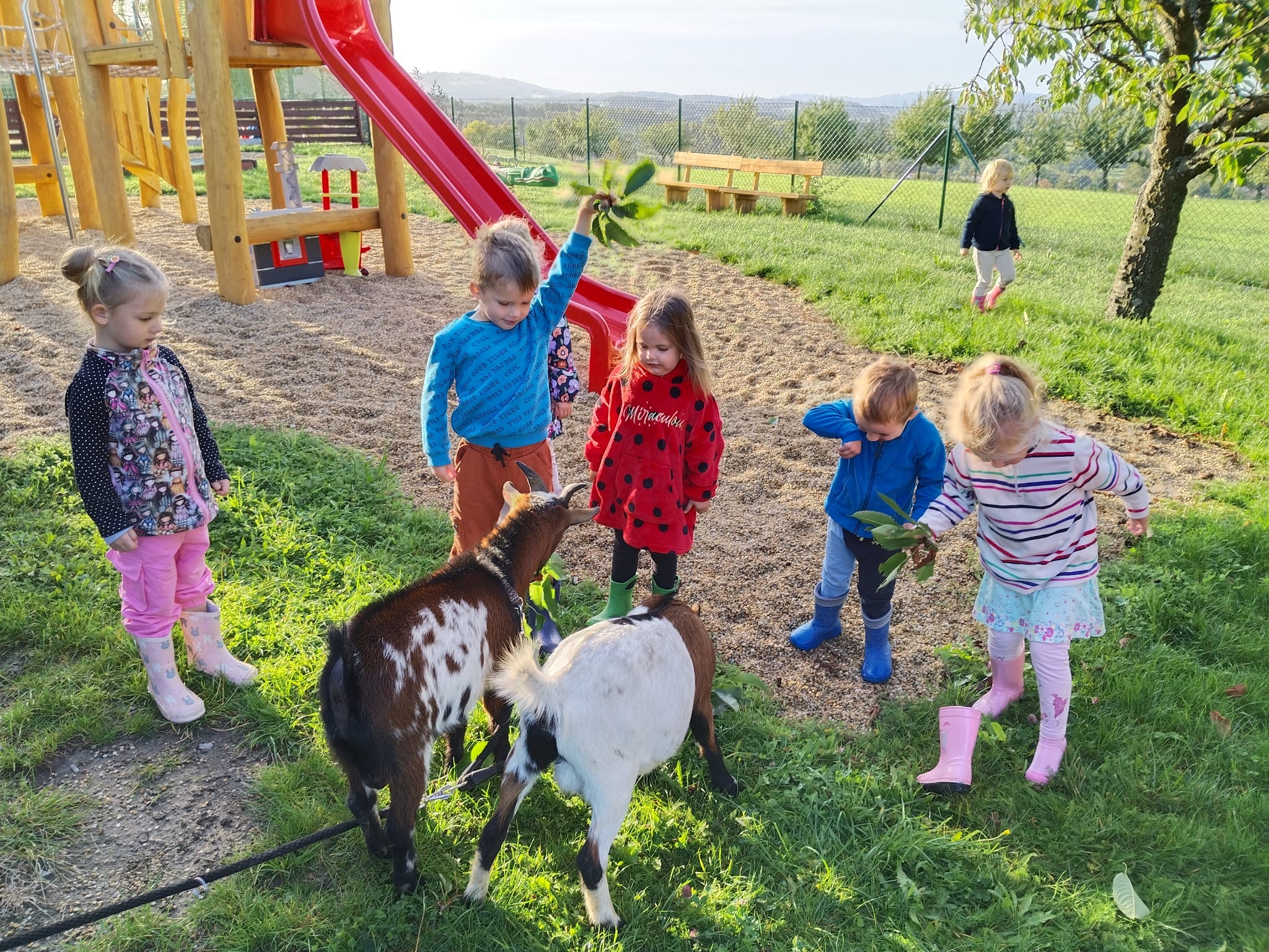 Další výlet byl jen o vesnici dál. K naší Eví do Tatobit, protože má doma mini zoo. Slepice, kachny, husy, králíky, psa, kočku, jezírko plné ryb, a hlavně papoušky. A mluví!