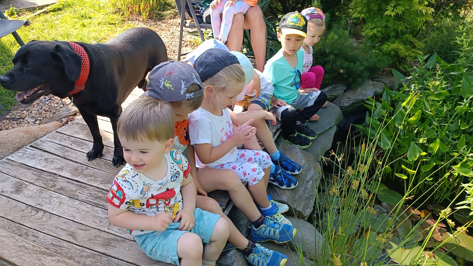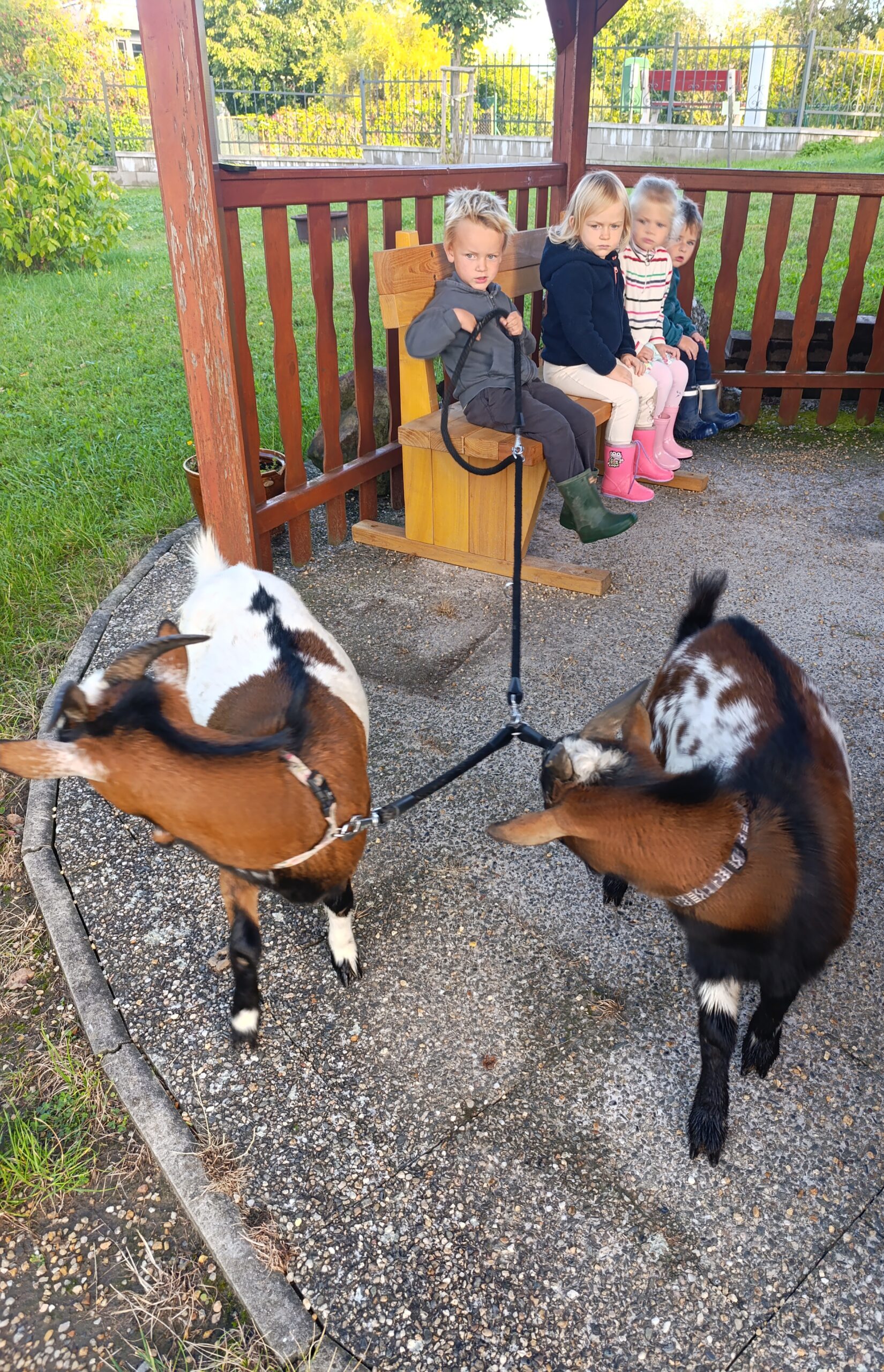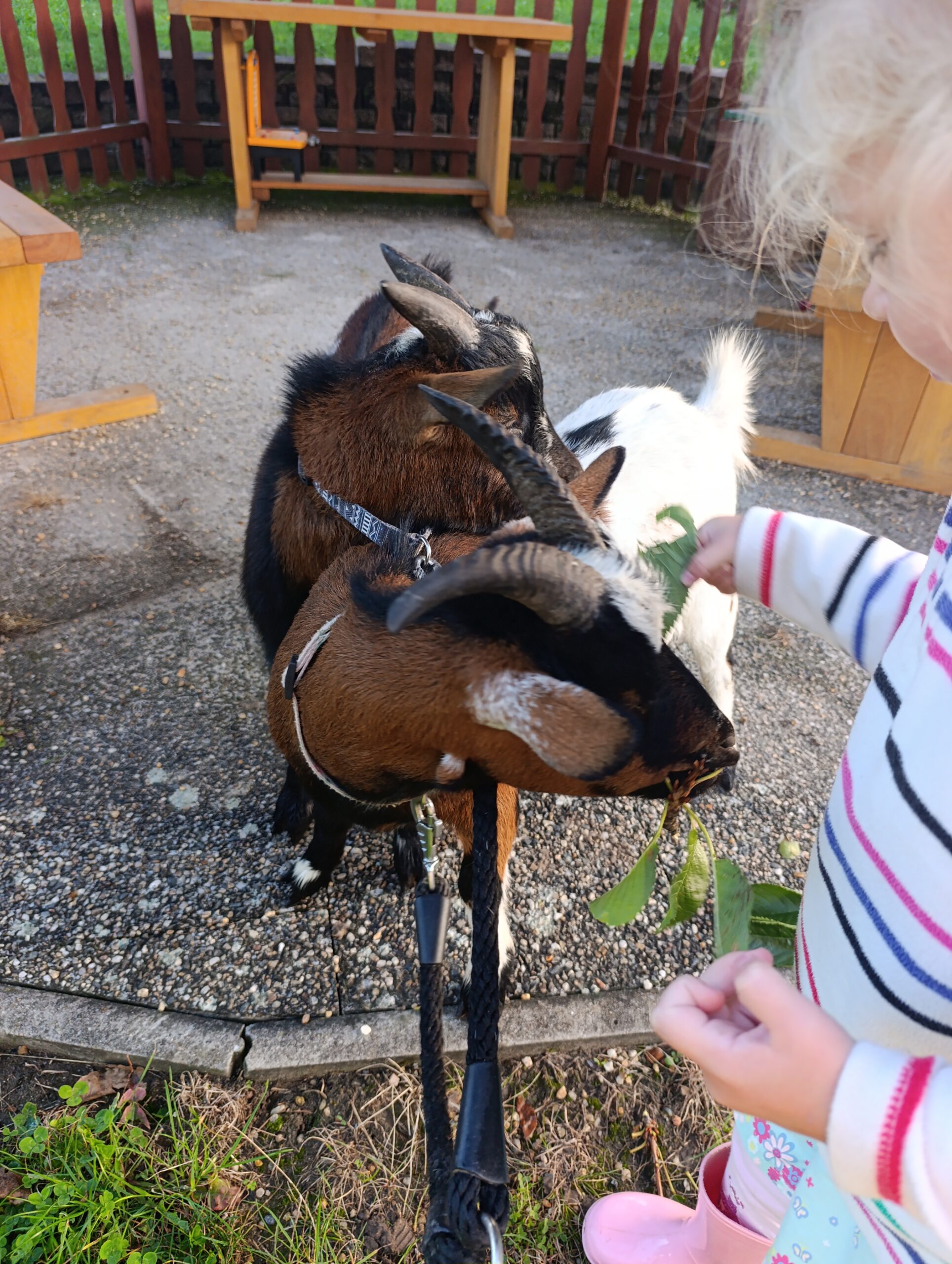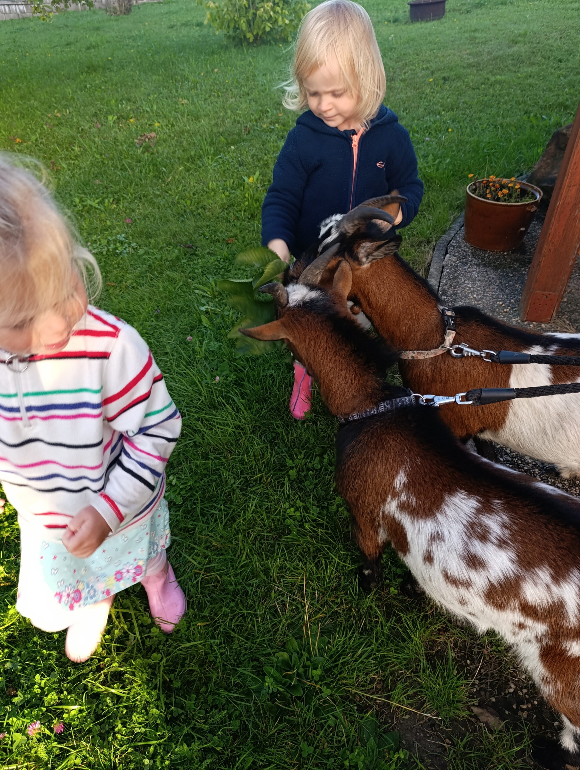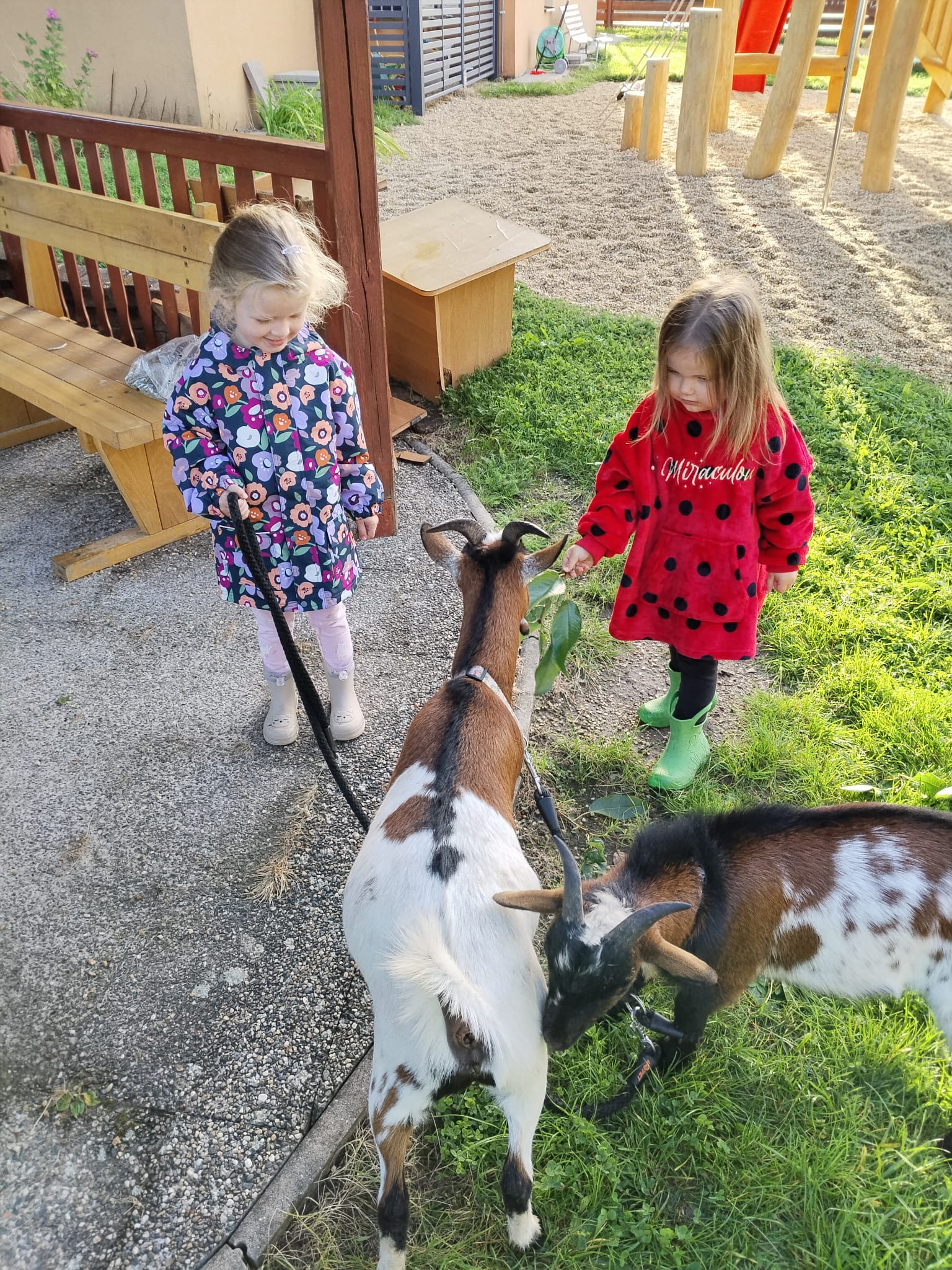 Další výlet byl jen o vesnici dál. K naší Eví do Tatobit, protože má doma mini zoo. Slepice, kachny, husy, králíky, psa, kočku, jezírko plné ryb, a hlavně papoušky. A mluví!