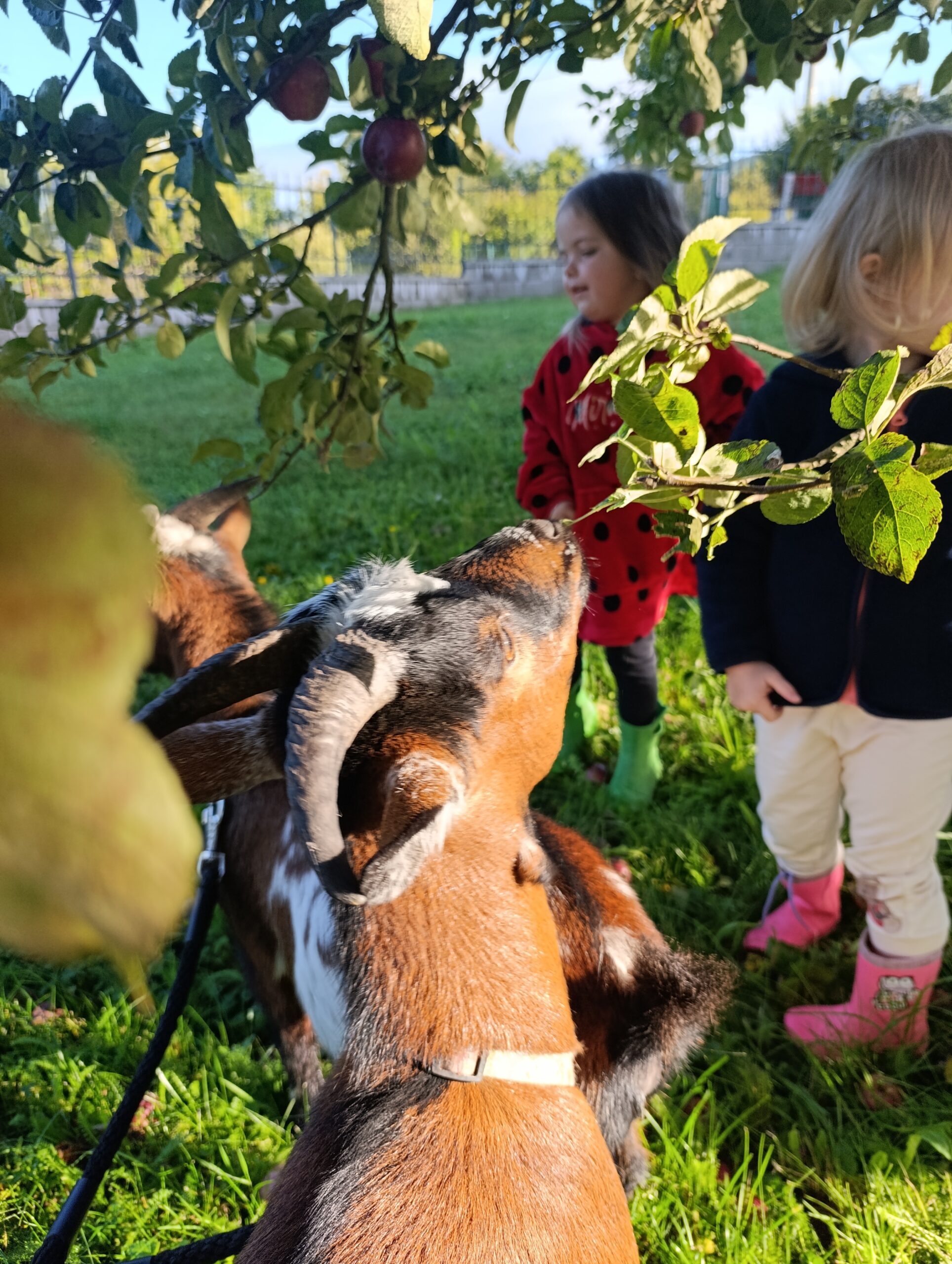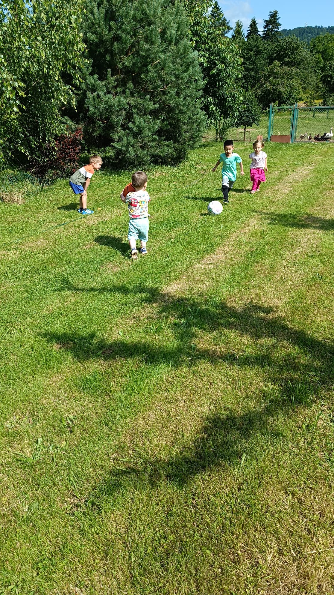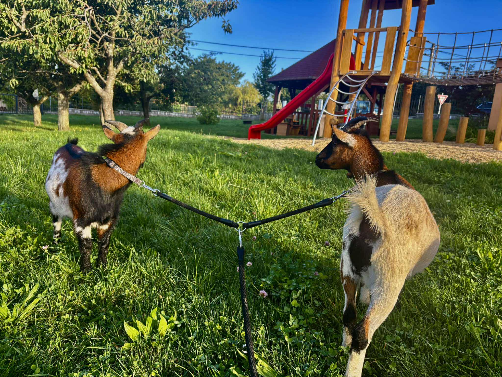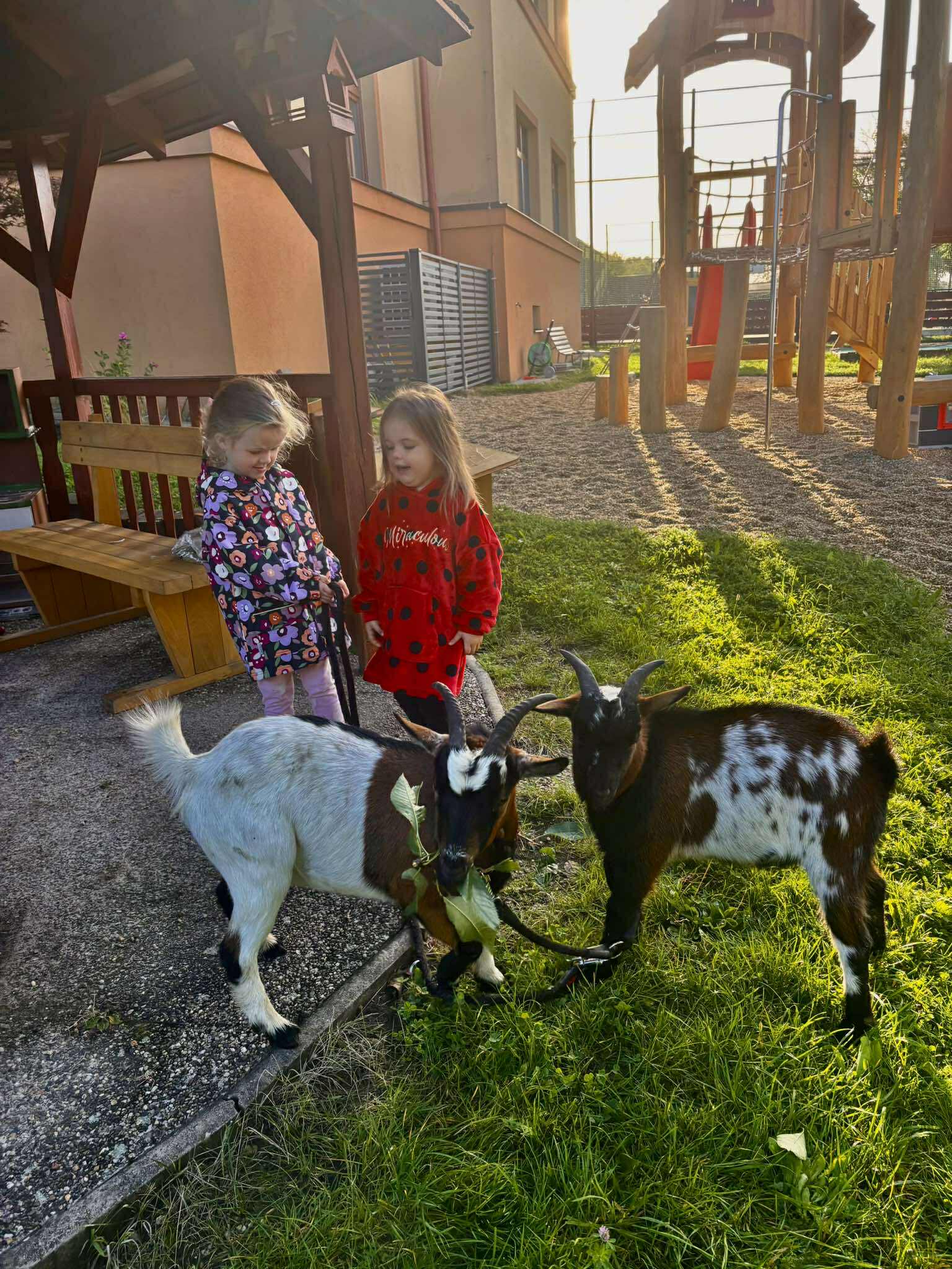 Další výlet byl jen o vesnici dál. K naší Eví do Tatobit, protože má doma mini zoo. Slepice, kachny, husy, králíky, psa, kočku, jezírko plné ryb, a hlavně papoušky. A mluví!