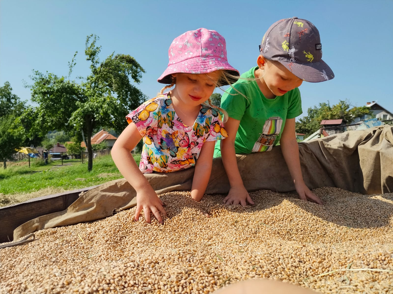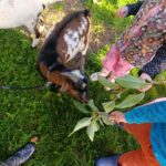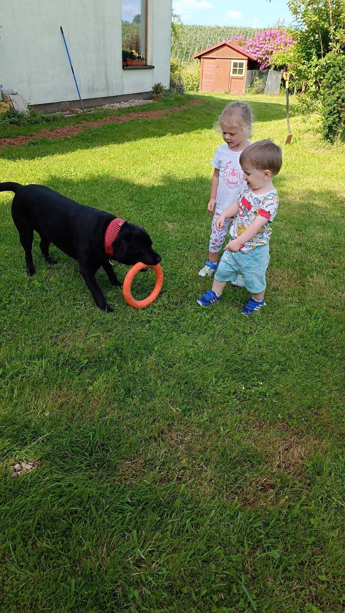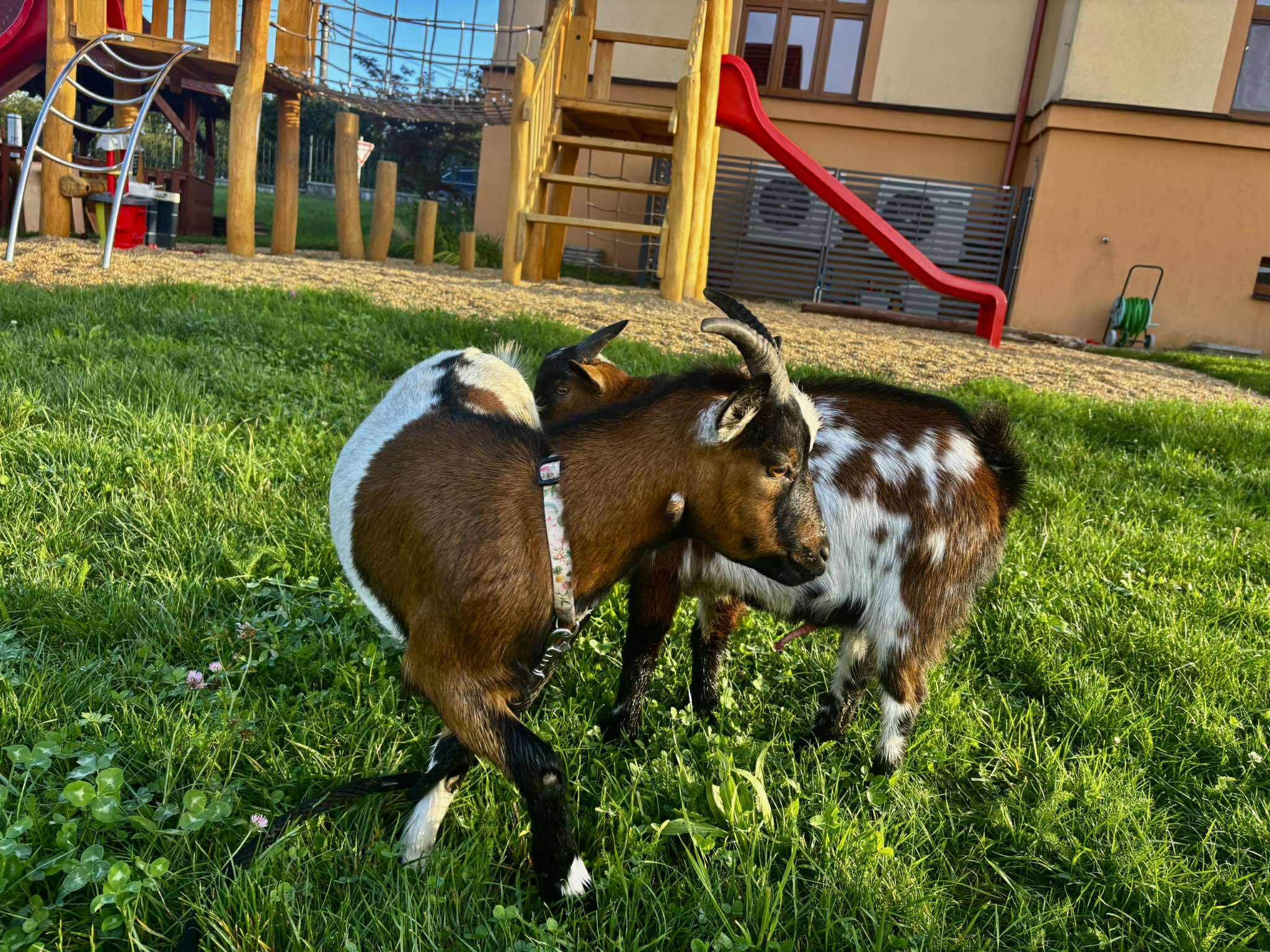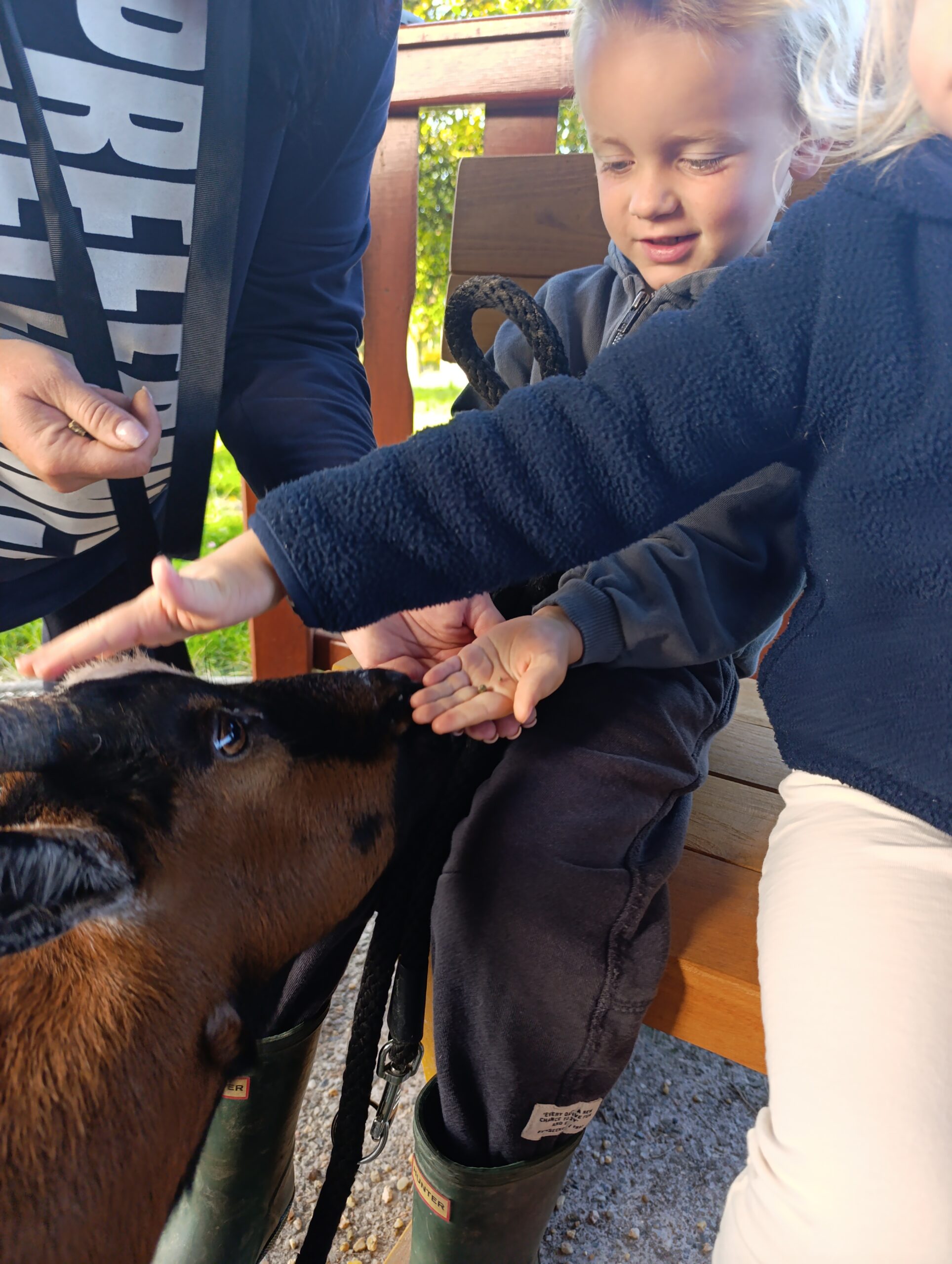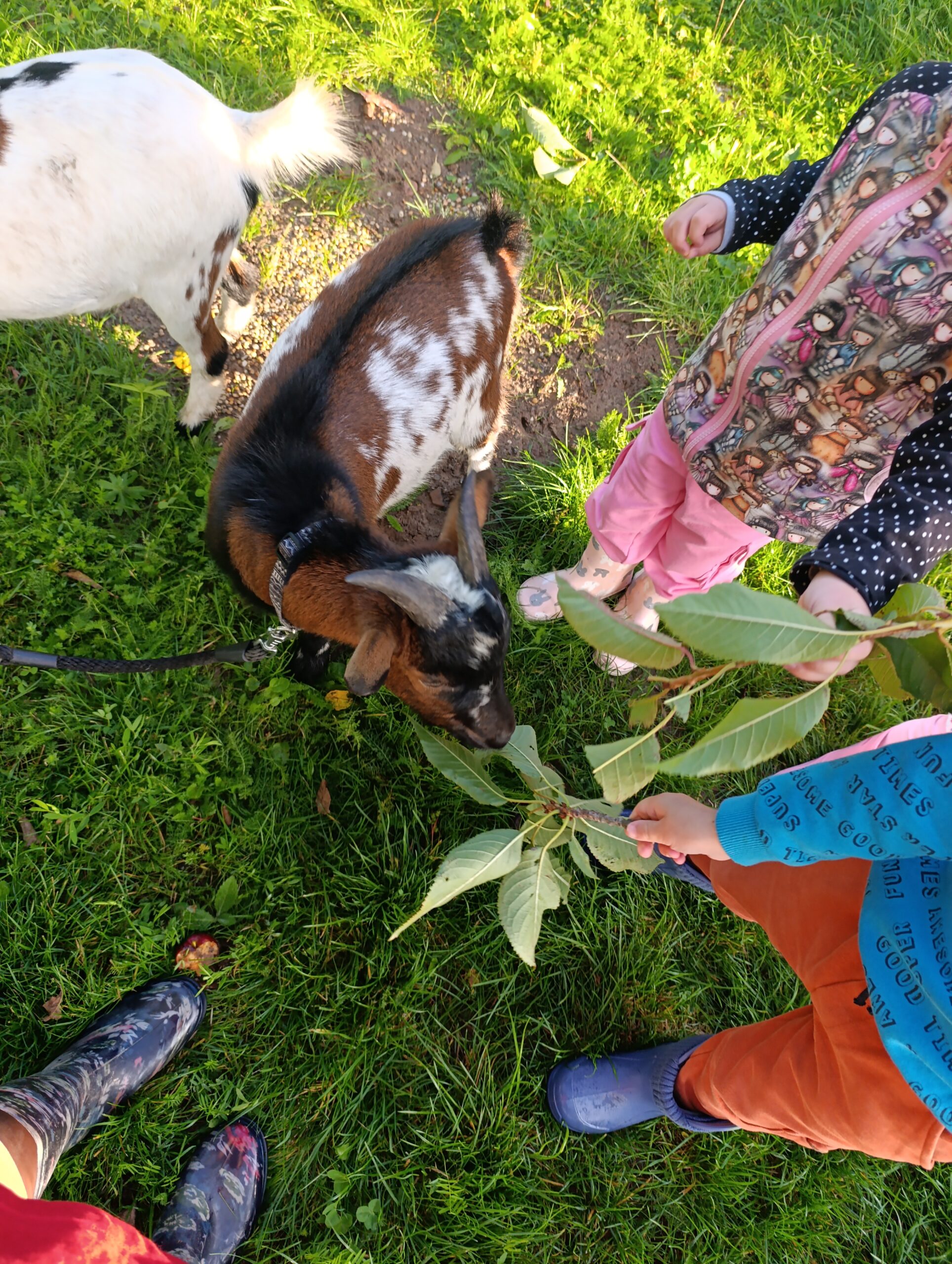 Další výlet byl jen o vesnici dál. K naší Eví do Tatobit, protože má doma mini zoo. Slepice, kachny, husy, králíky, psa, kočku, jezírko plné ryb, a hlavně papoušky. A mluví!