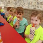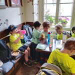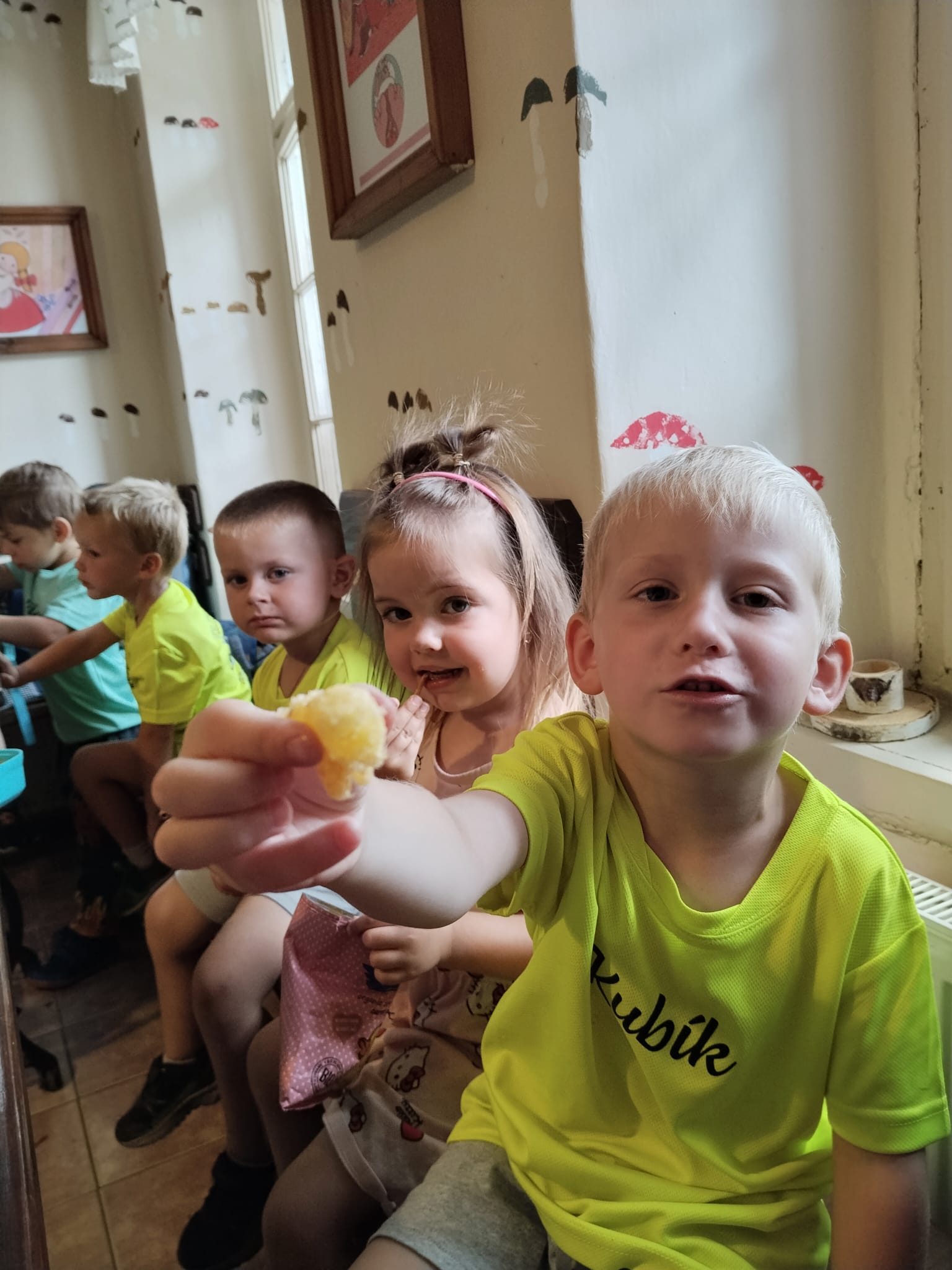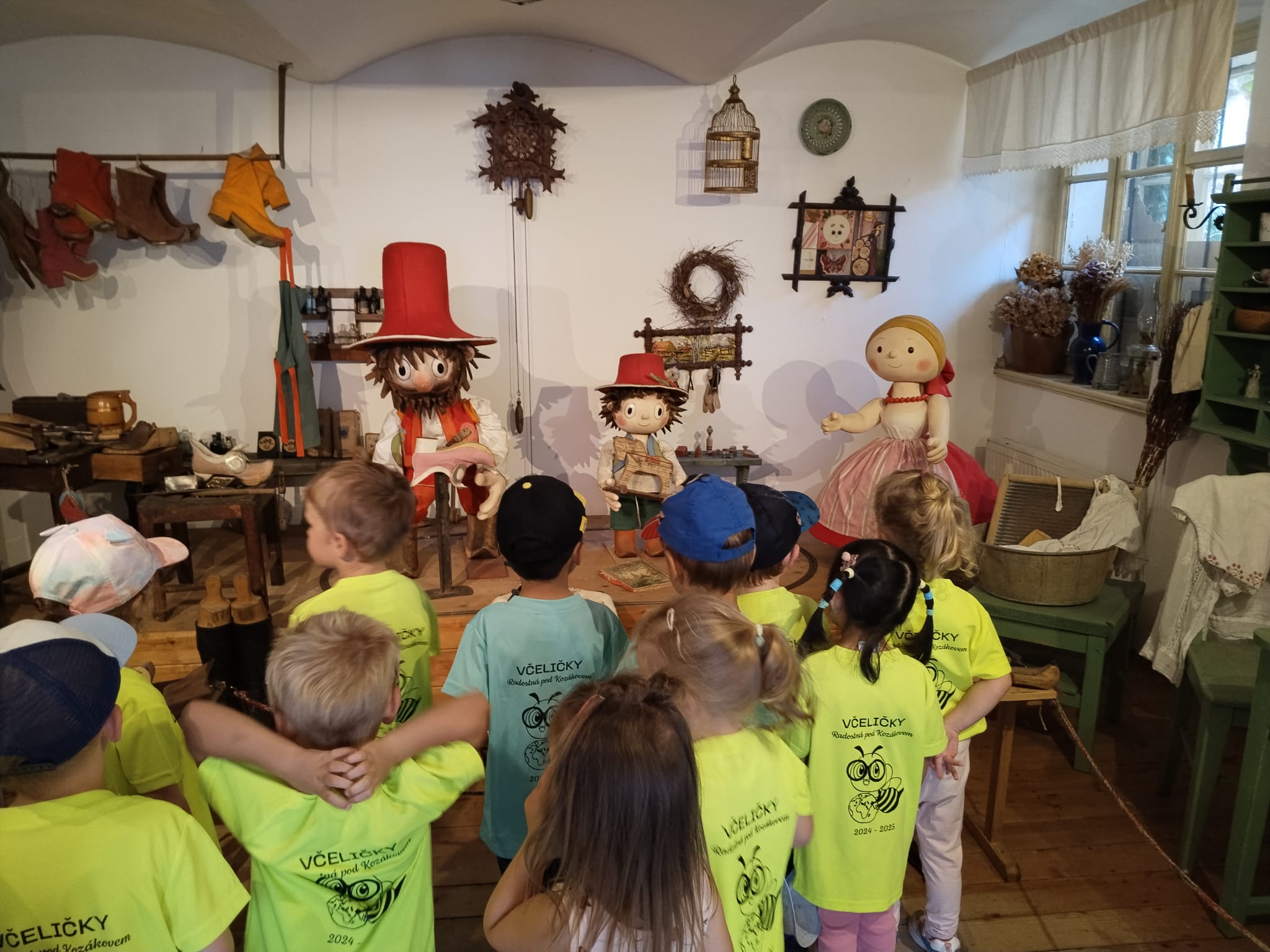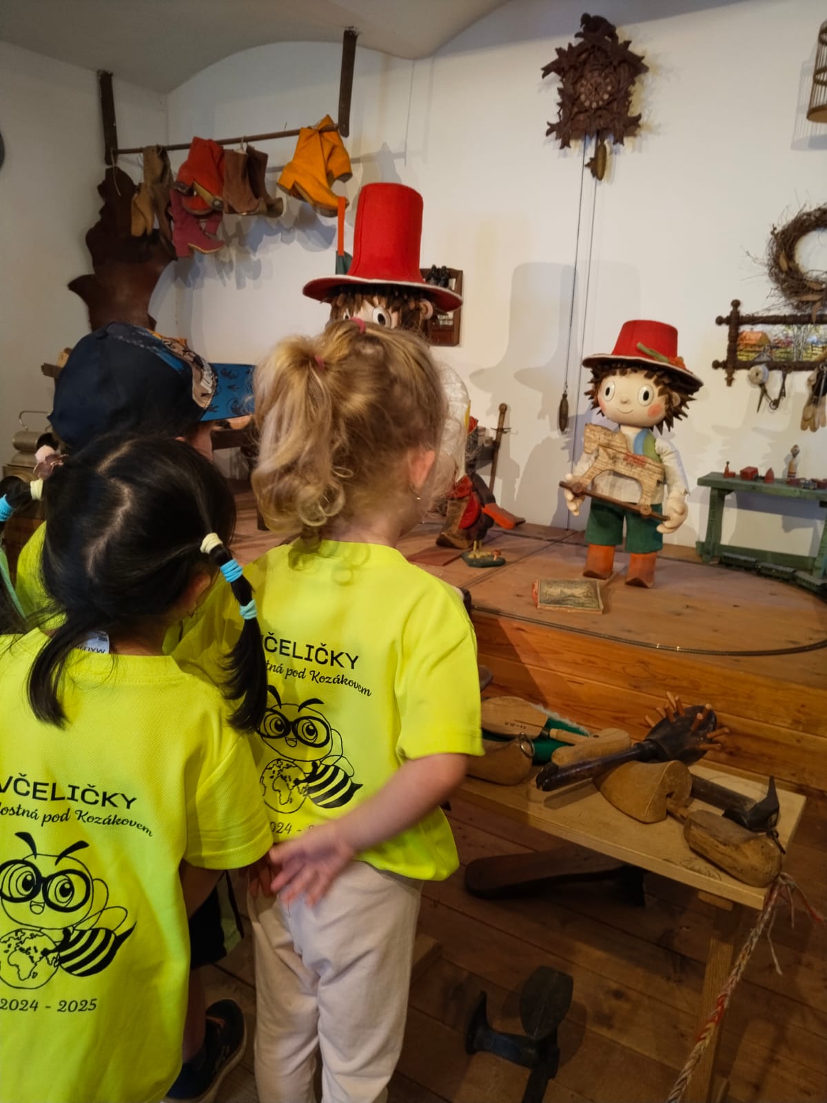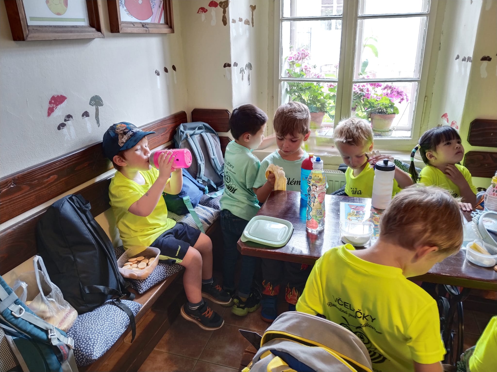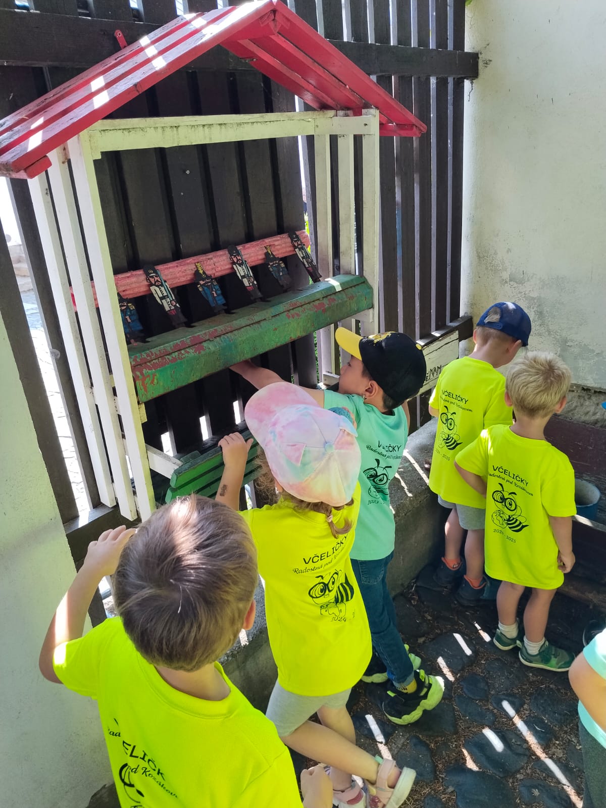 Delší výlet, to už chce mít nějaký cíl! Včelařská farma Tarasovi v Příšovicích… Na dva týdny se nám školička proměnila doslova ve včelí úl! Koneckonců vždyť jsme Včeličky! Jak to v úlu vypadá, že každý tam má svůj úkol, místo, smysl. Povídaly, ukazovaly, vysvětlovaly, pozorovaly, poslouchaly. Otázek milión, dětská zvídavost je nekonečná… Pak kreslily, malovaly, vyráběly. Včeliček plná školka. 😊A to nej nakonec, výlet na farmu, kde ty naše včeličky mohly vidět, jak to vypadá v pravém včelím úlu a co všechno díky včelám máme. Med, kosmetiku, medovinu, svíčky (tu si každý odnesl domů, aby mohly mít každý kousek toho daru doma) a hlavně život…