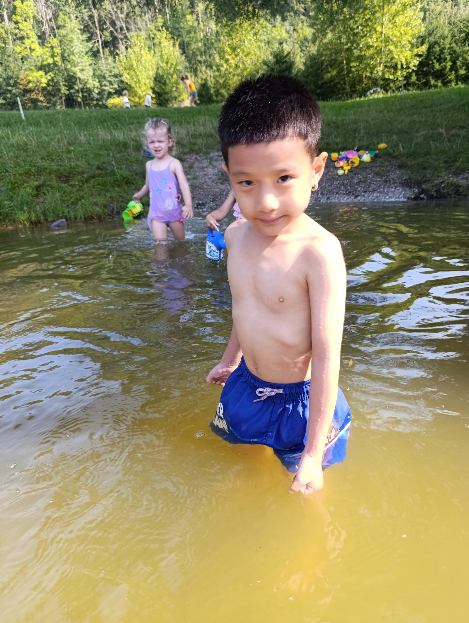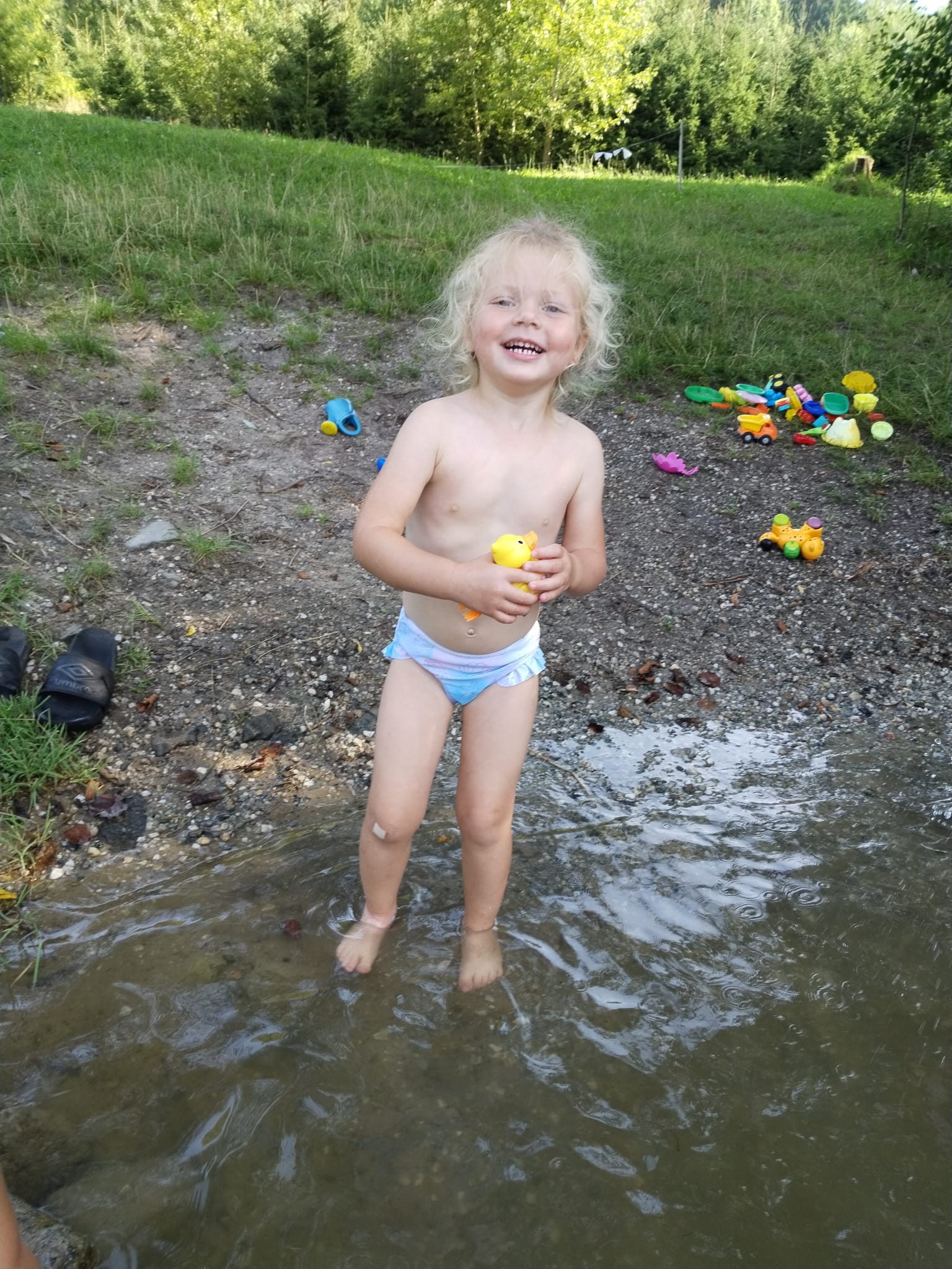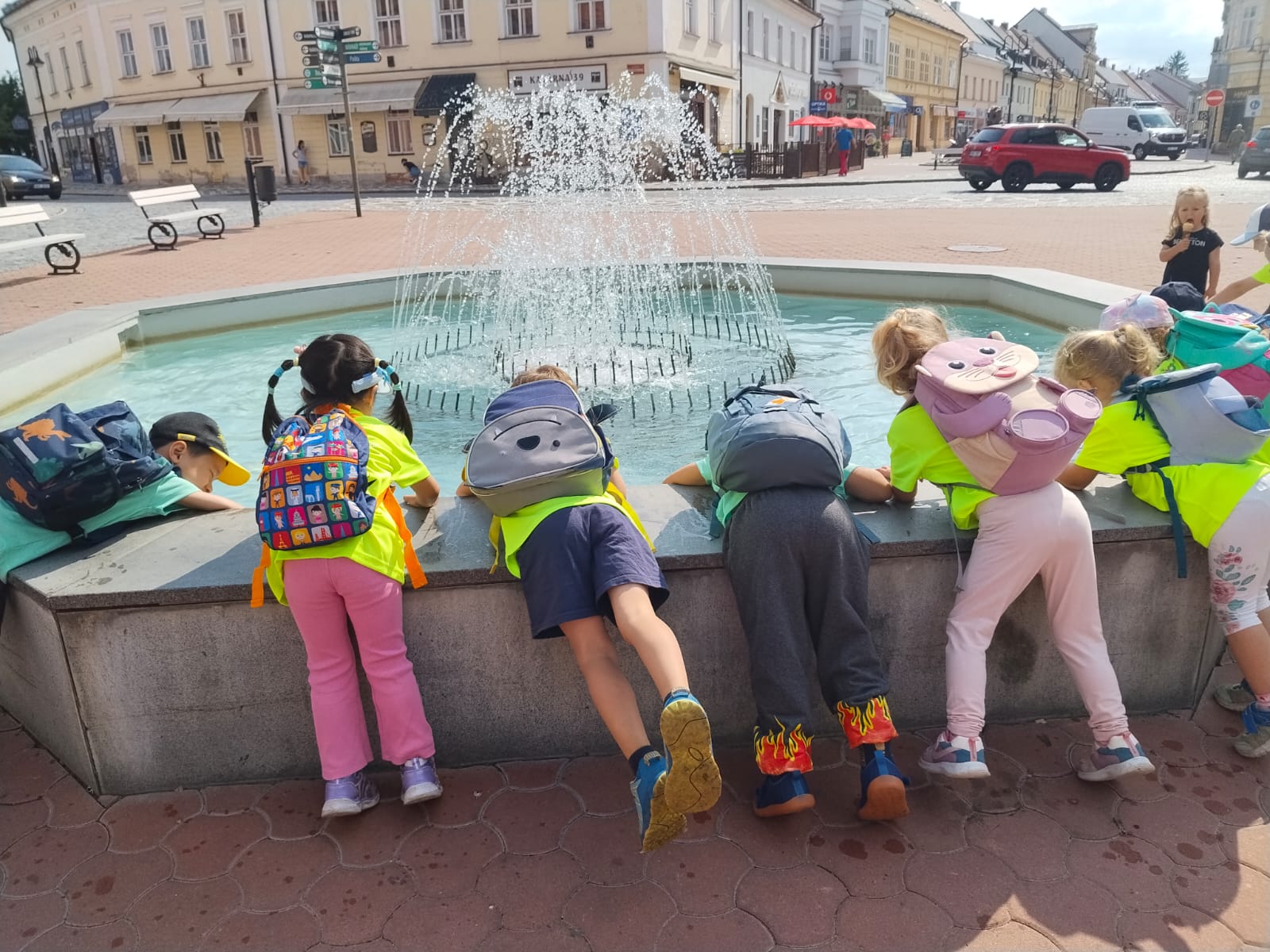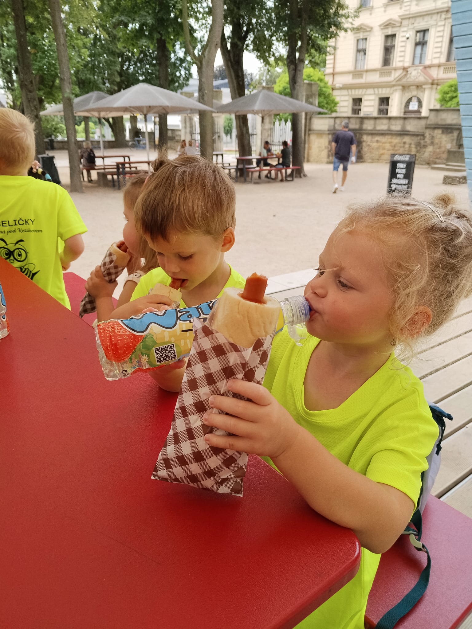Třeba taková procházka na Špici s vidinou sladké odměny. To se nožkám šlo samo, protože točená zmrzlina je prostě top.😊 Cestou malé osvěžení pod pumpou… Děti nevěřícně koukaly, co to vlastně je, ale když přišly na princip, tak to byla velká legrace.