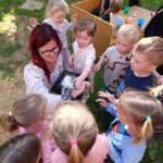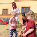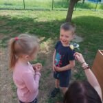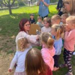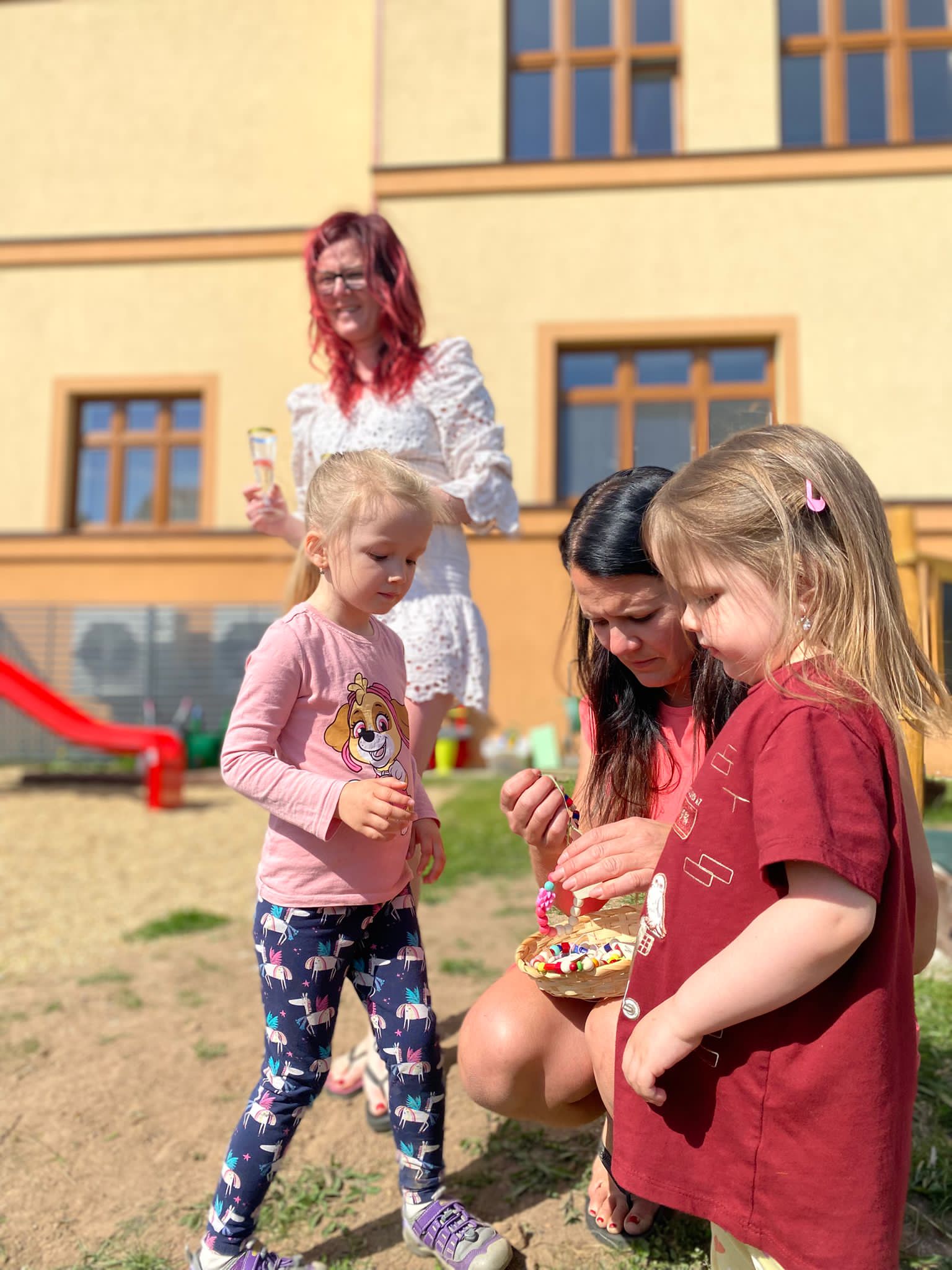 Včeličky se musely činit! Nasít semínka, protože vypěstovat si svoji zeleninu je radost. Přípravy na Velikonoce to také není jen tak. Ozdobit vejdunky, zasít osení, vyrobit slepičky a kuřátka… No prostě ať tu školku máme hezkou. Po práci taky trochu zábavy, a tak jsme si udělali Velikonoční olympiádu. Disciplín nespočet a v hlavní roli vejce. Vejce na lžíci, sbírání vajíček na čas, hledání vajíček, třídění podle barev,… Užili jsme si spousty legrace. Velikonoční radovánky jsme zakončili výletem do Lomnice, kde jsme celé dopoledne plnili úkoly na Velikonoční stezce a na konci nás čekal poklad. 😊