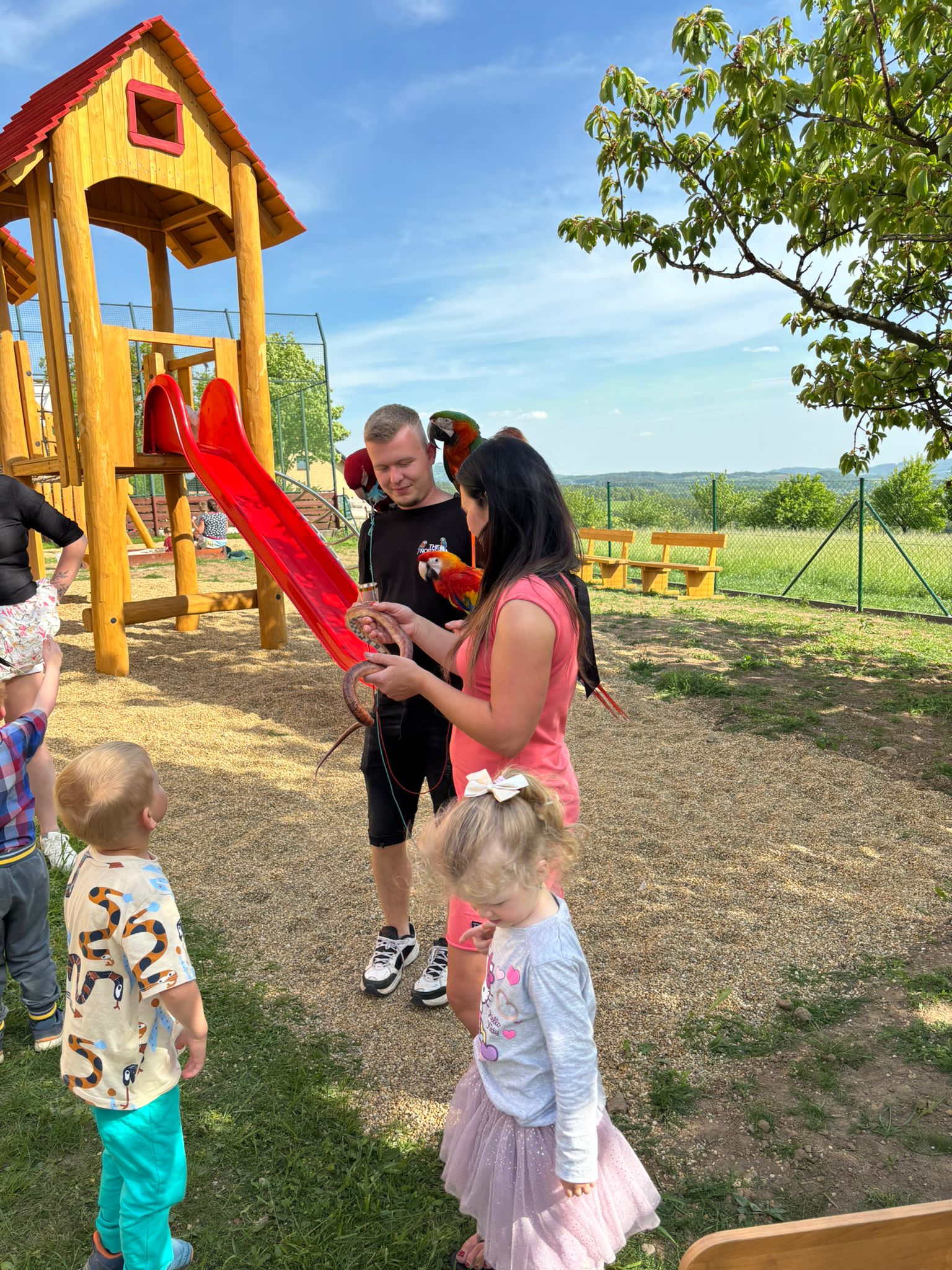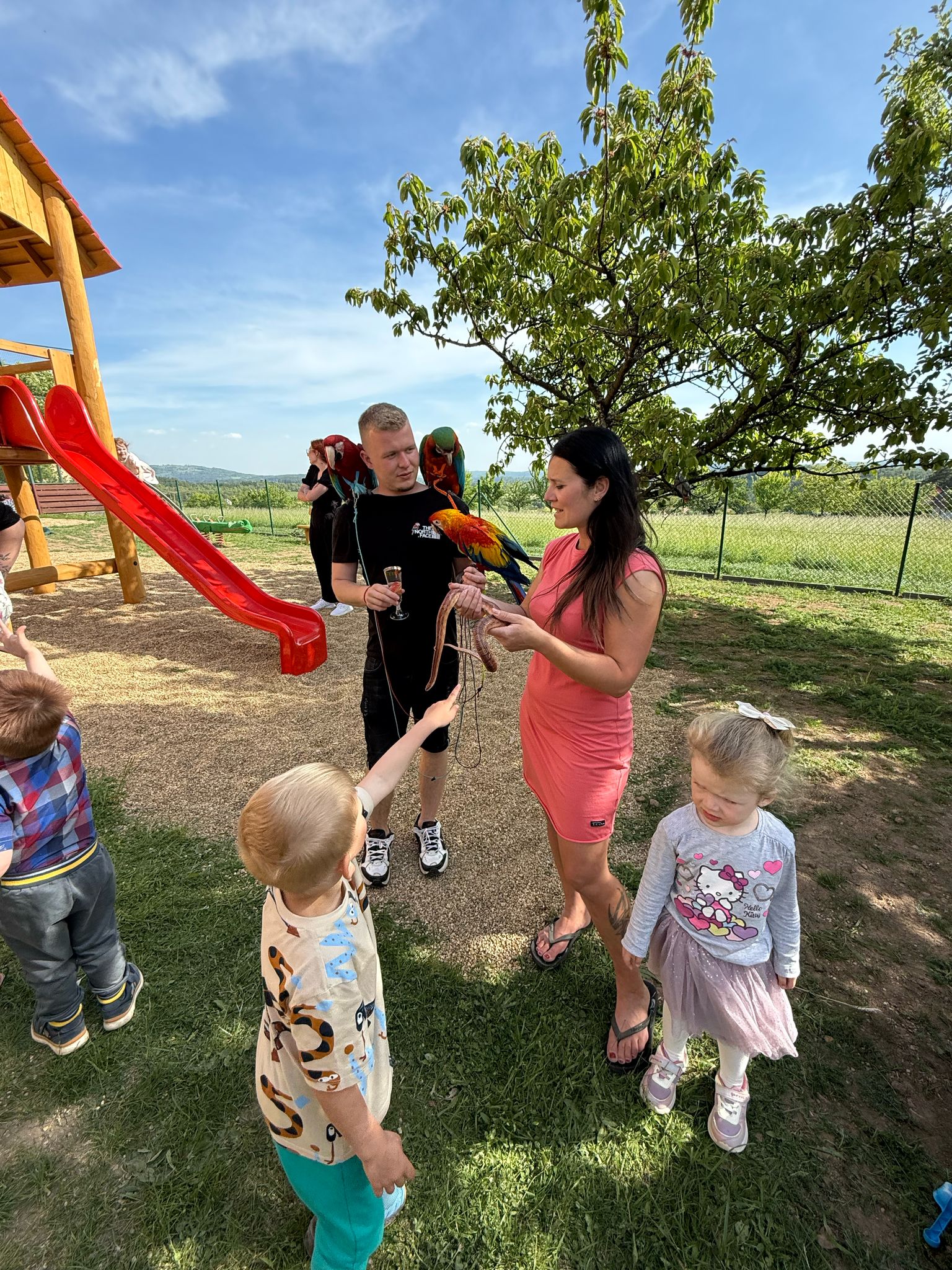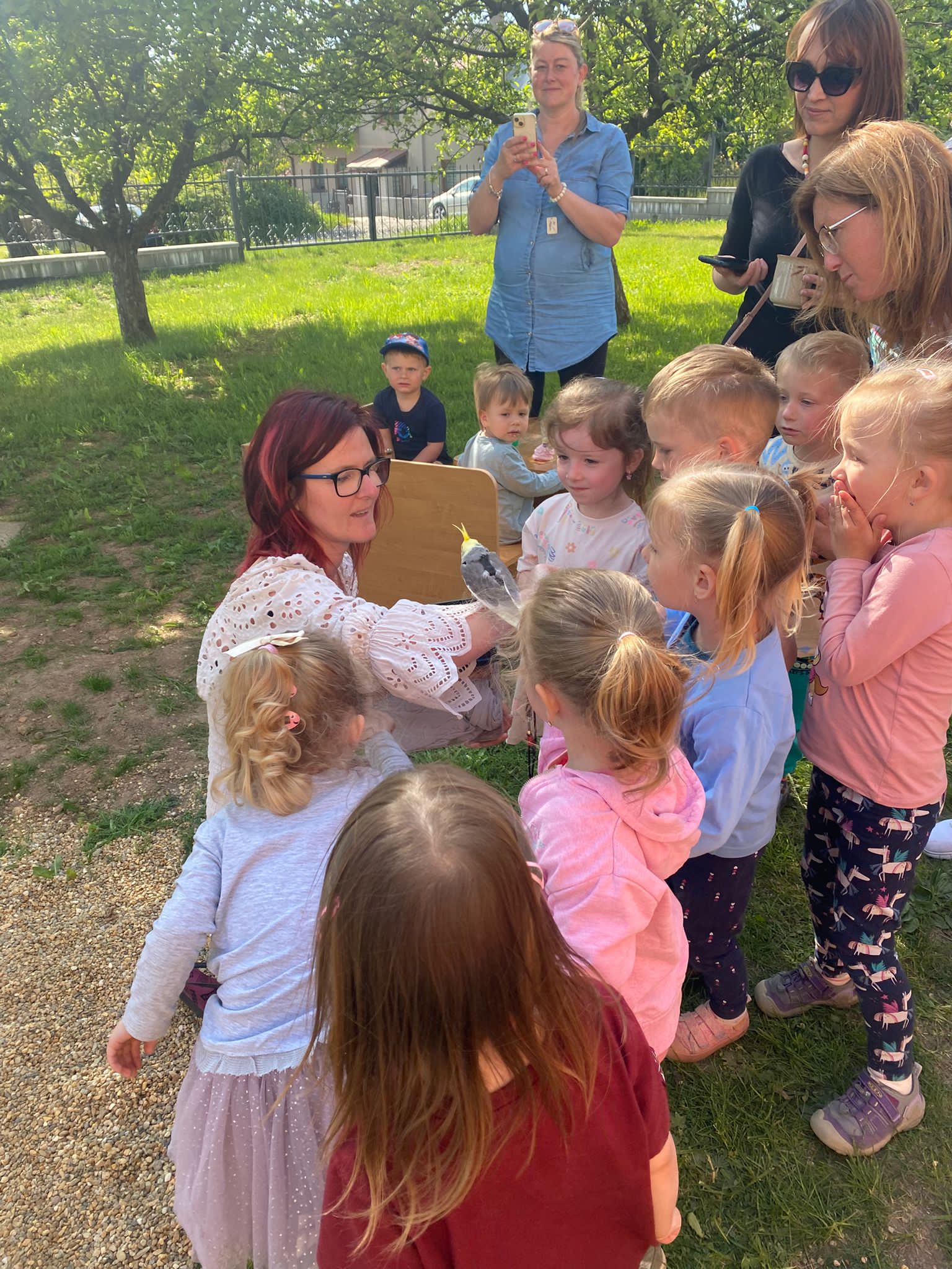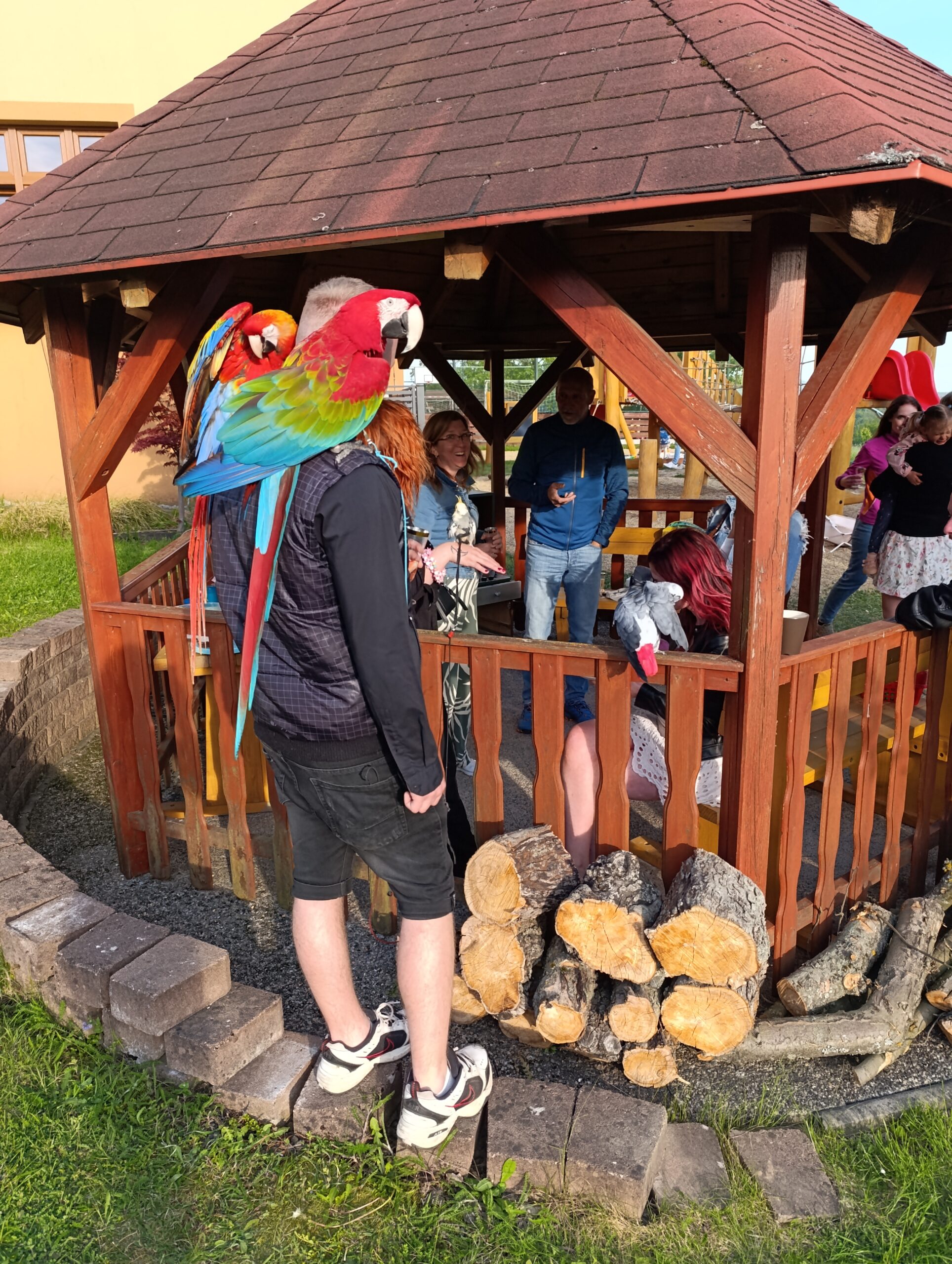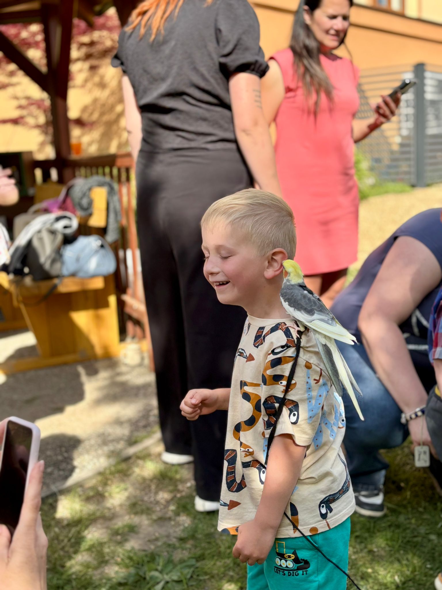Květen- lásky čas… A největší lásky těch nejmenších jsou maminky! Starostlivé, pečující, laskavé a někdy zaslouženě unavené… A proto jim patří velké dík a zaslouží si občas nějaké to rozmazlení… Tak jsme jim společně s dětmi udělaly krásné odpoledne na zahradě, kde si ve stínu stromů mohly v klidu vypít kávu, dát si něco dobrého a se sklenkou vychlazeného prosseca si popovídat s ostatními maminkami o těch svých pokladech… 😊 Překvapení nejen pro děti byla ukázka papoušků se známým chovatelem Spajkerino (Patrikem Jírou).