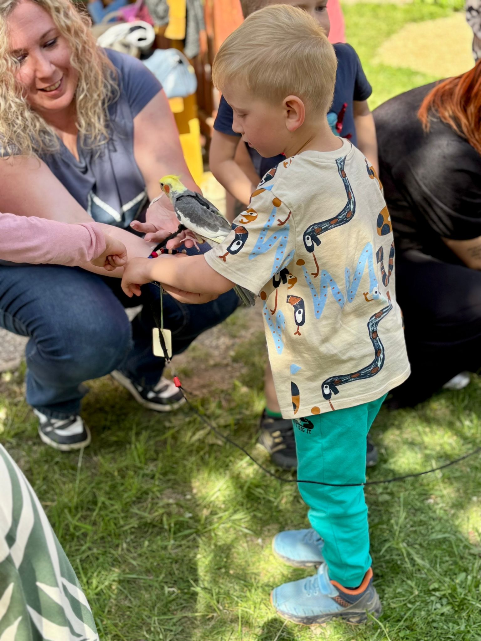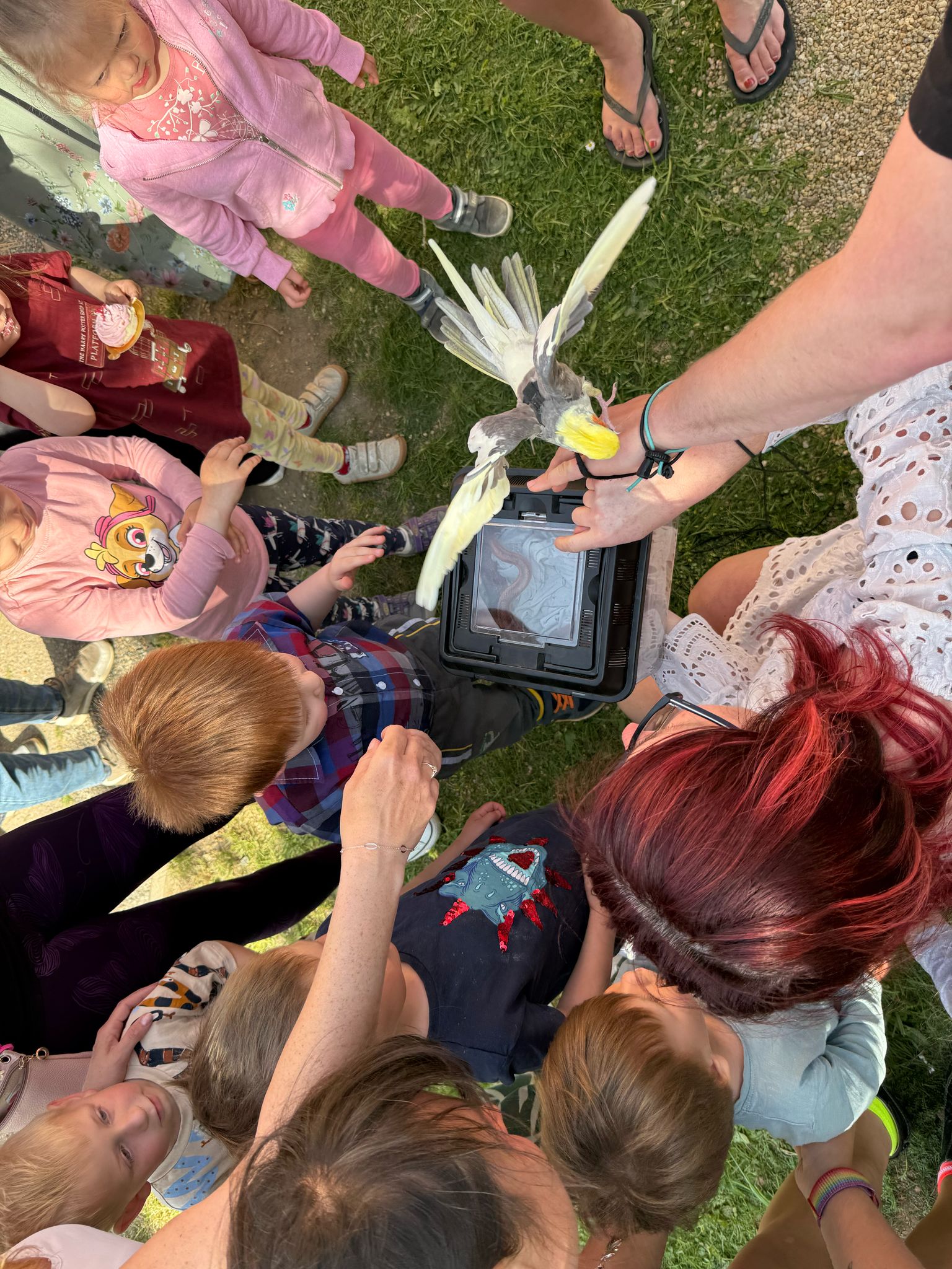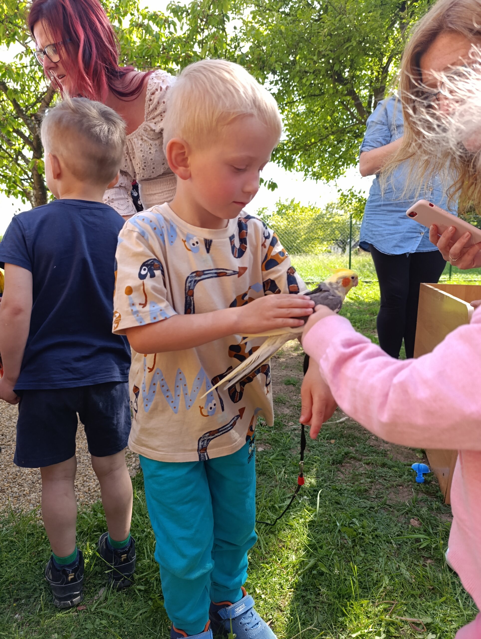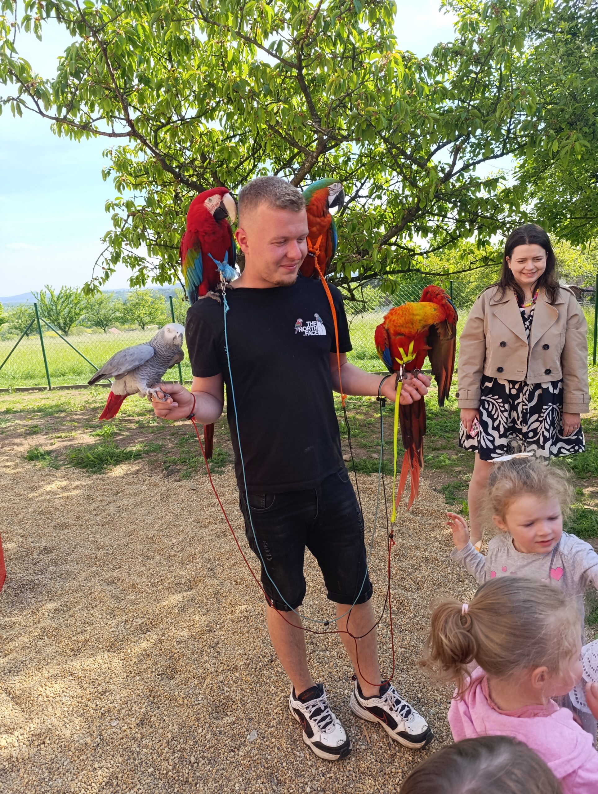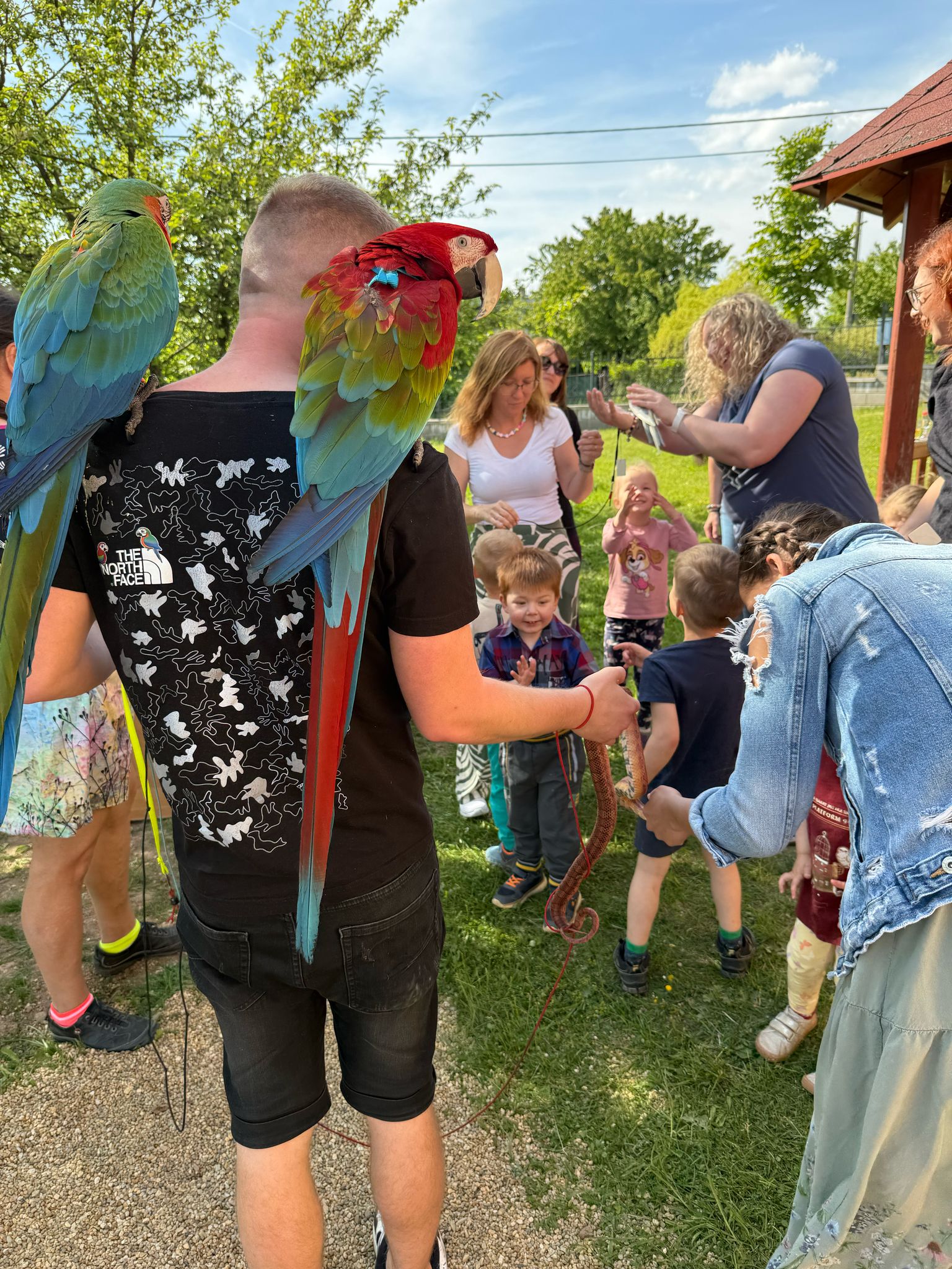 Květen- lásky čas… A největší lásky těch nejmenších jsou maminky! Starostlivé, pečující, laskavé a někdy zaslouženě unavené… A proto jim patří velké dík a zaslouží si občas nějaké to rozmazlení… Tak jsme jim společně s dětmi udělaly krásné odpoledne na zahradě, kde si ve stínu stromů mohly v klidu vypít kávu, dát si něco dobrého a se sklenkou vychlazeného prosseca si popovídat s ostatními maminkami o těch svých pokladech… 😊 Překvapení nejen pro děti byla ukázka papoušků se známým chovatelem Spajkerino (Patrikem Jírou).