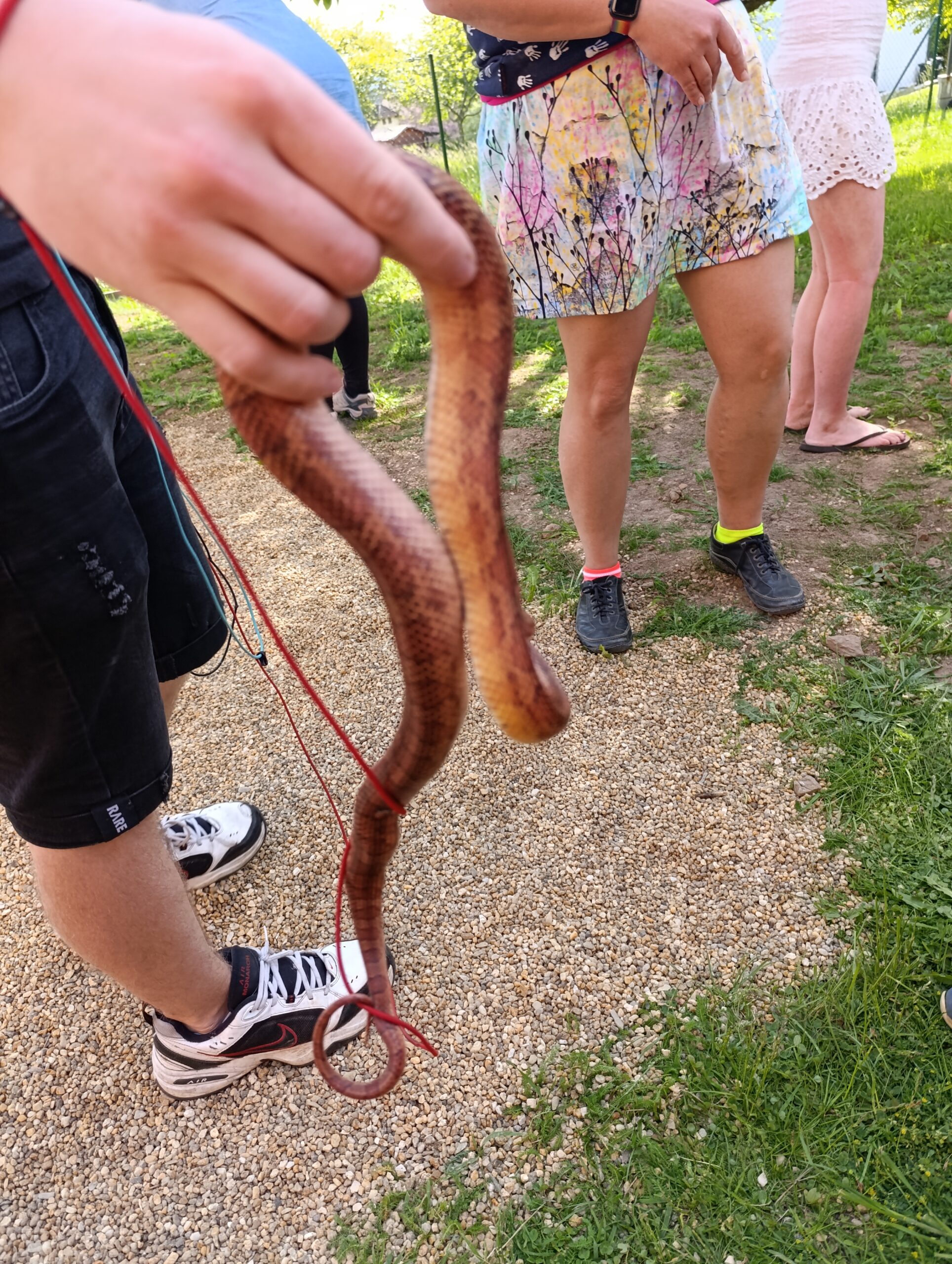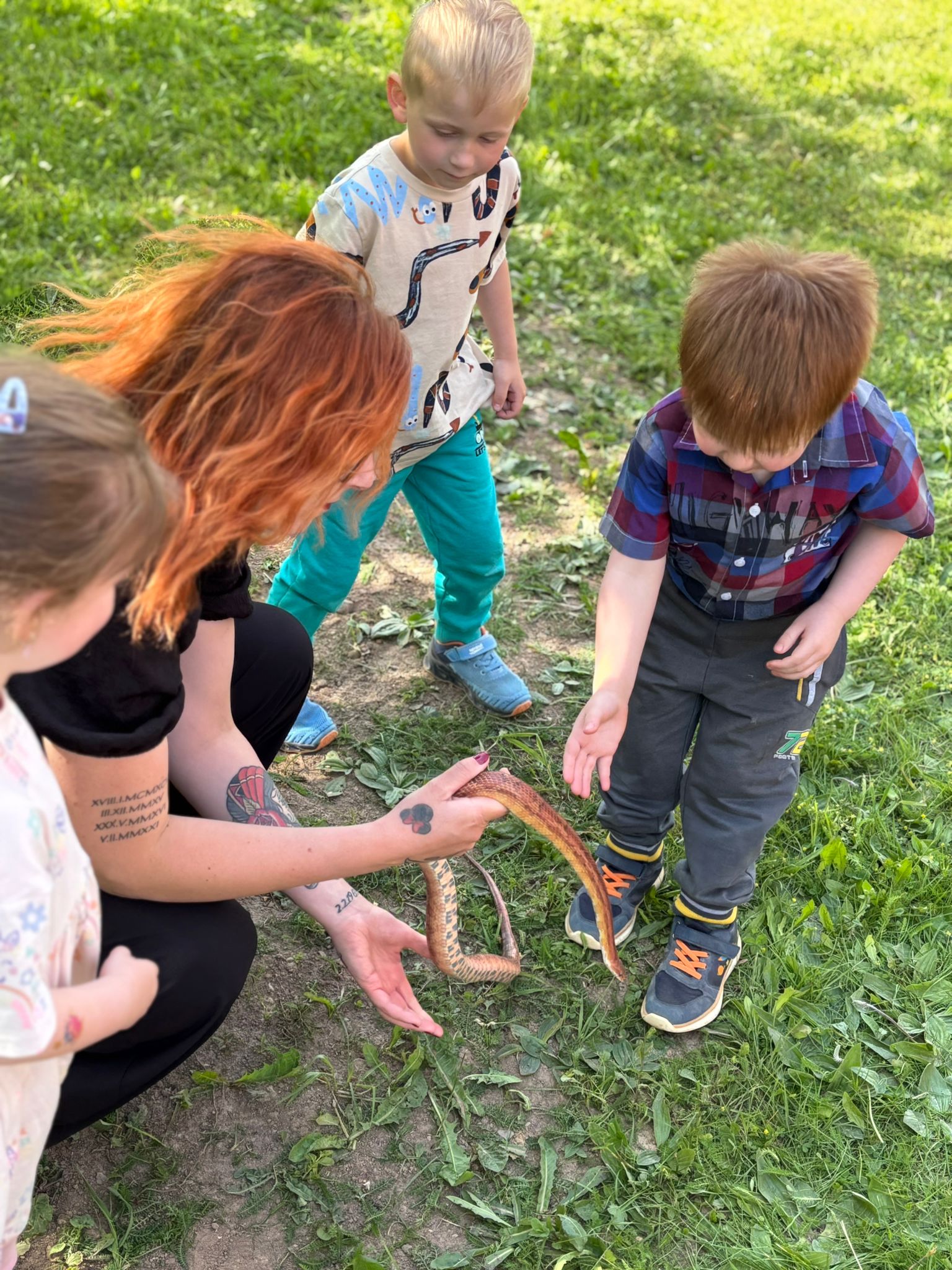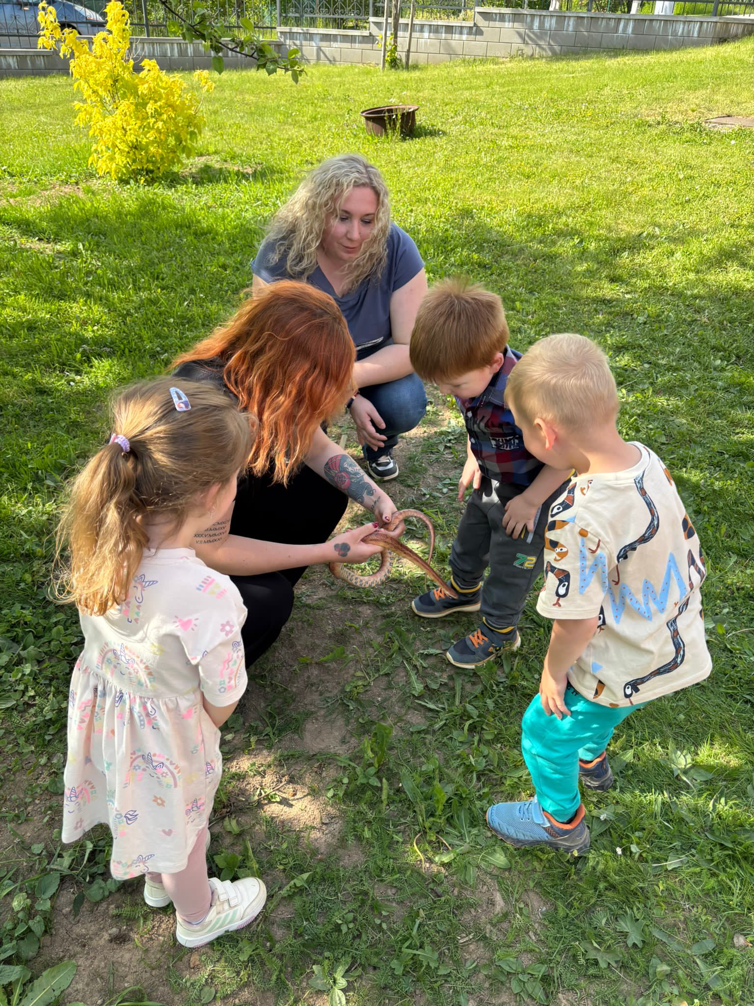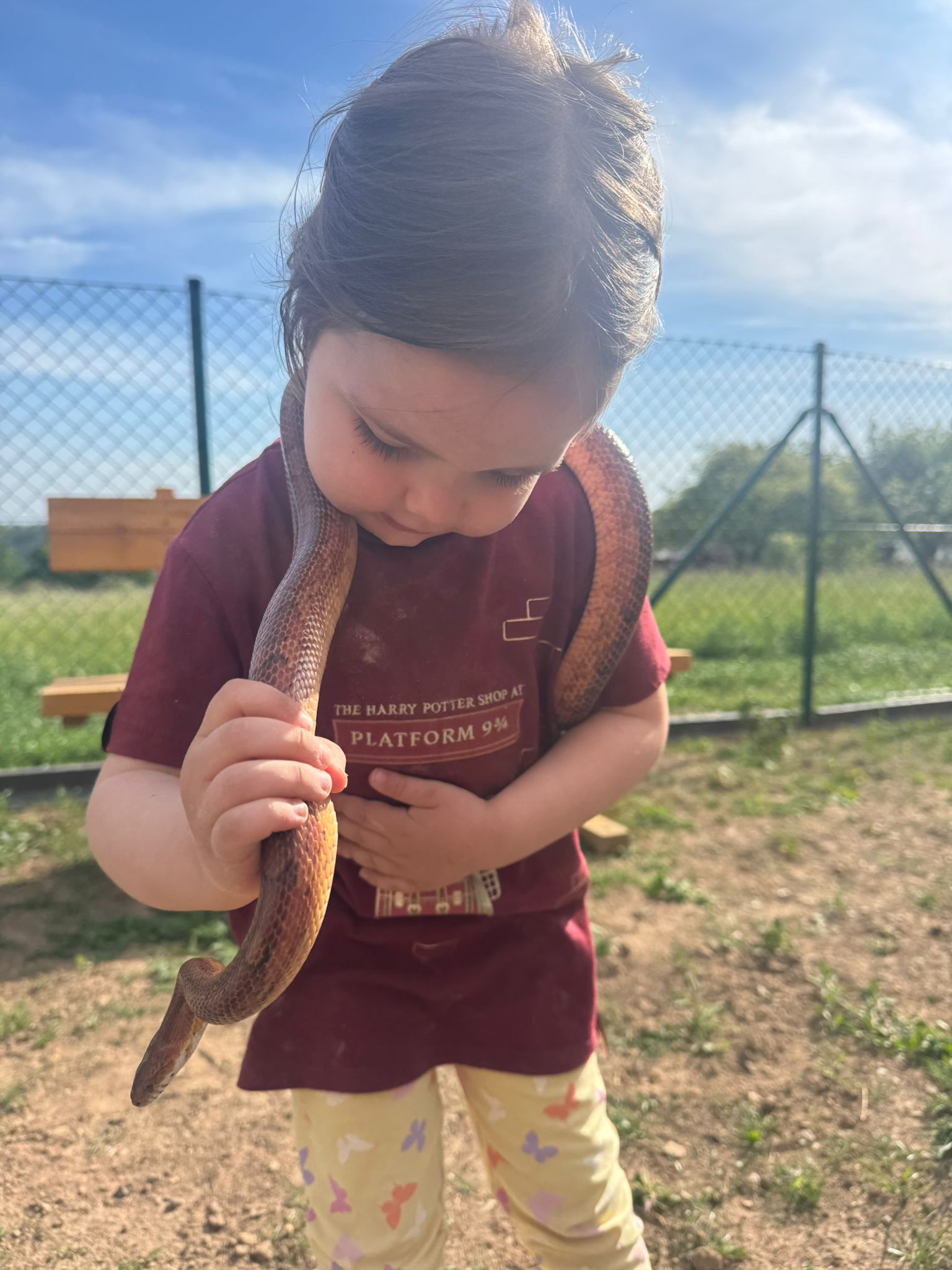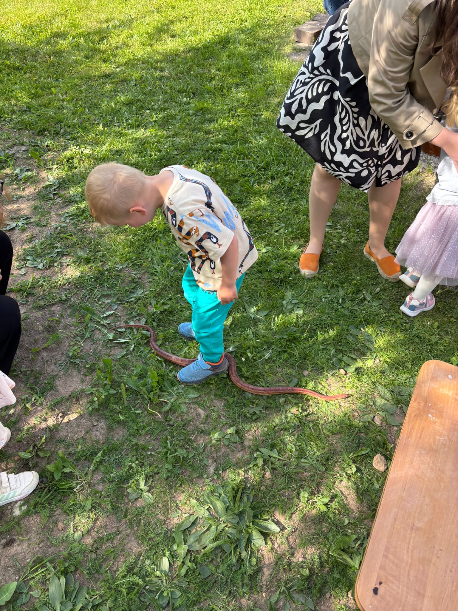 Na svatého Jiří vylézají hadi a štíři… V přírodě potkat hada to není jen tak, ale za námi přijeli až do školky. Děkujeme Dominikovi za neskutečný zážitek. Protože kdo může říct, že na vlastní oči viděl 3,5m dlouhou krajtu tmavou, hroznýše duhového, korálovku kalifornskou nebo se pomazlit s krajtou královskou… 😊