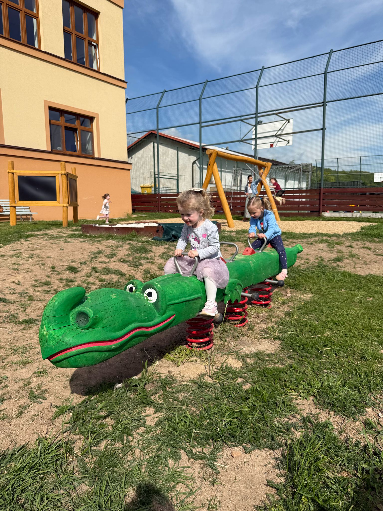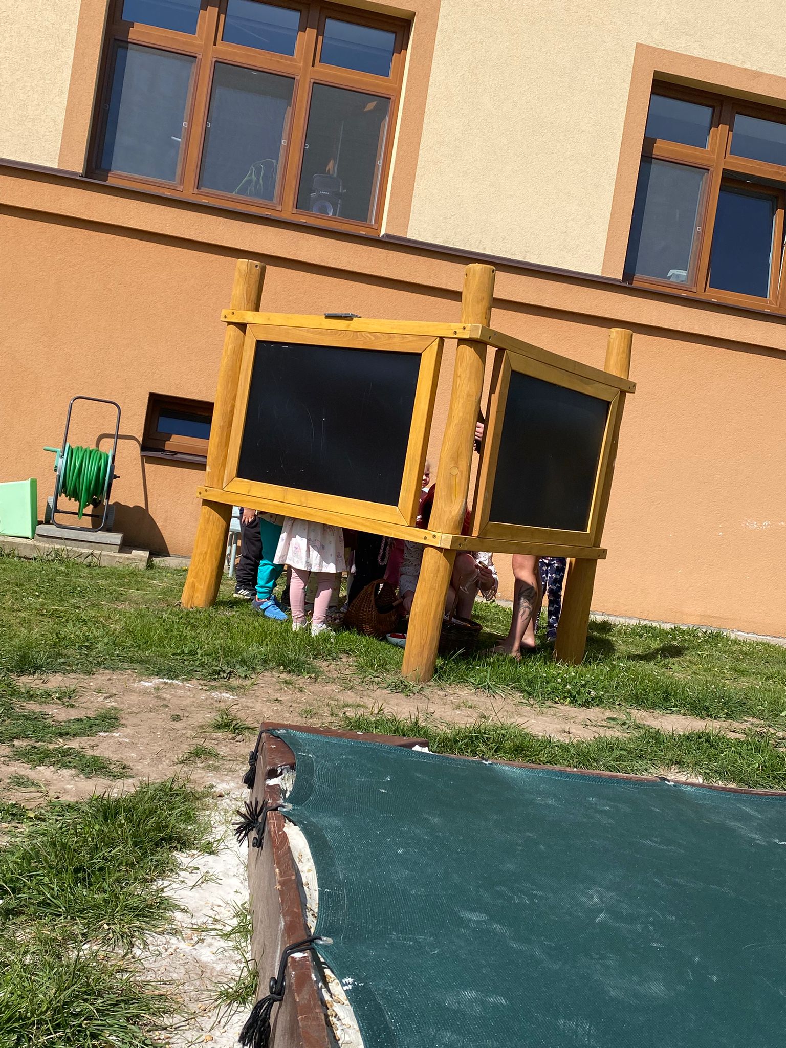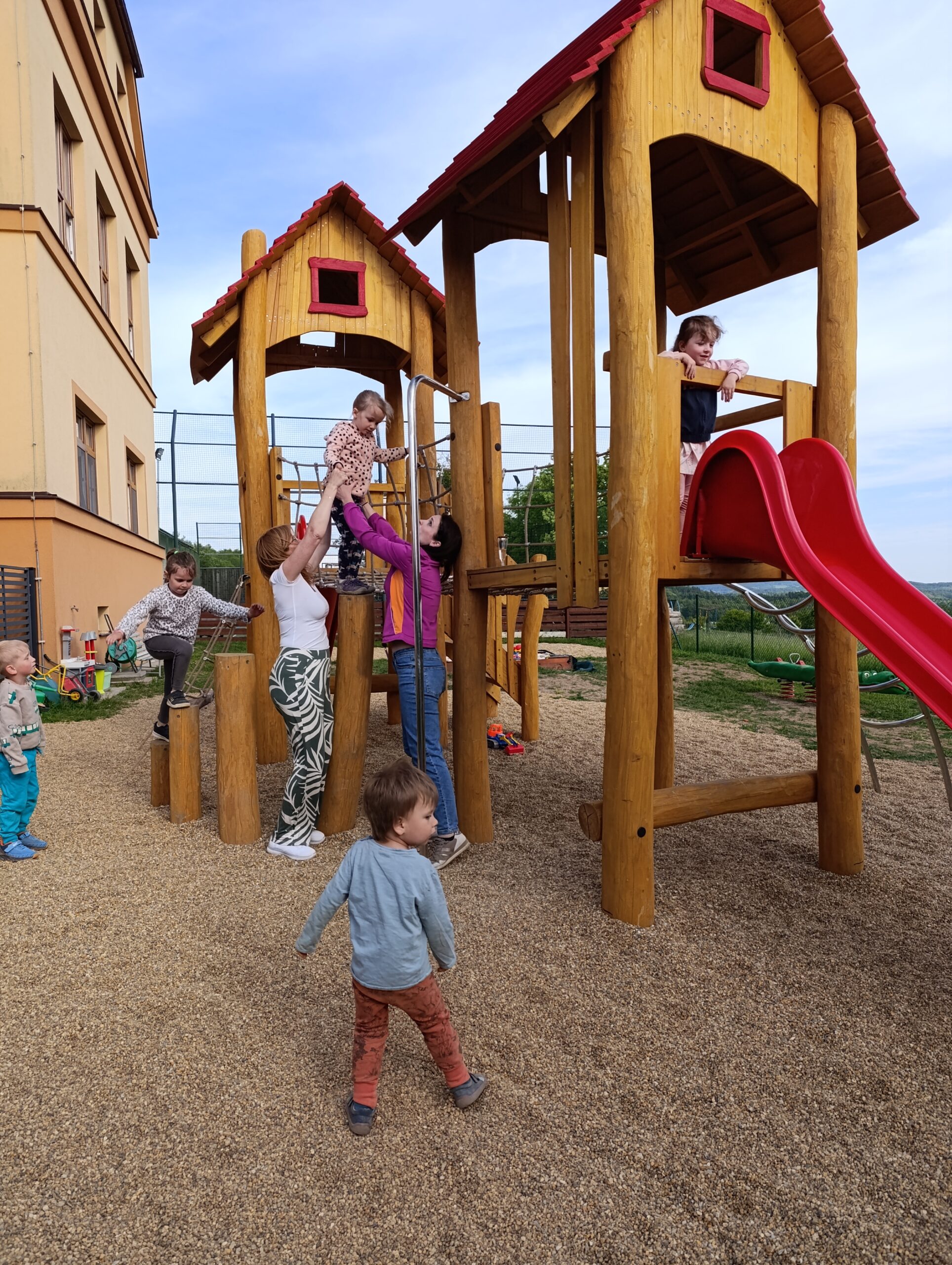 Venku nás to baví a trávíme tam každou možnou chvíli, co nám počasí dovolí. Jistě jste si všimli, že se buduje nové hřiště nejen pro naše děti. Prosíme Vás o trpělivost a ohleduplnost. Dorovnané plochy jsou čerstvě oseté trávou. Prosíme pohybujte se při návštěvě hřiště mino tyto plochy. Děkujeme!