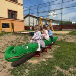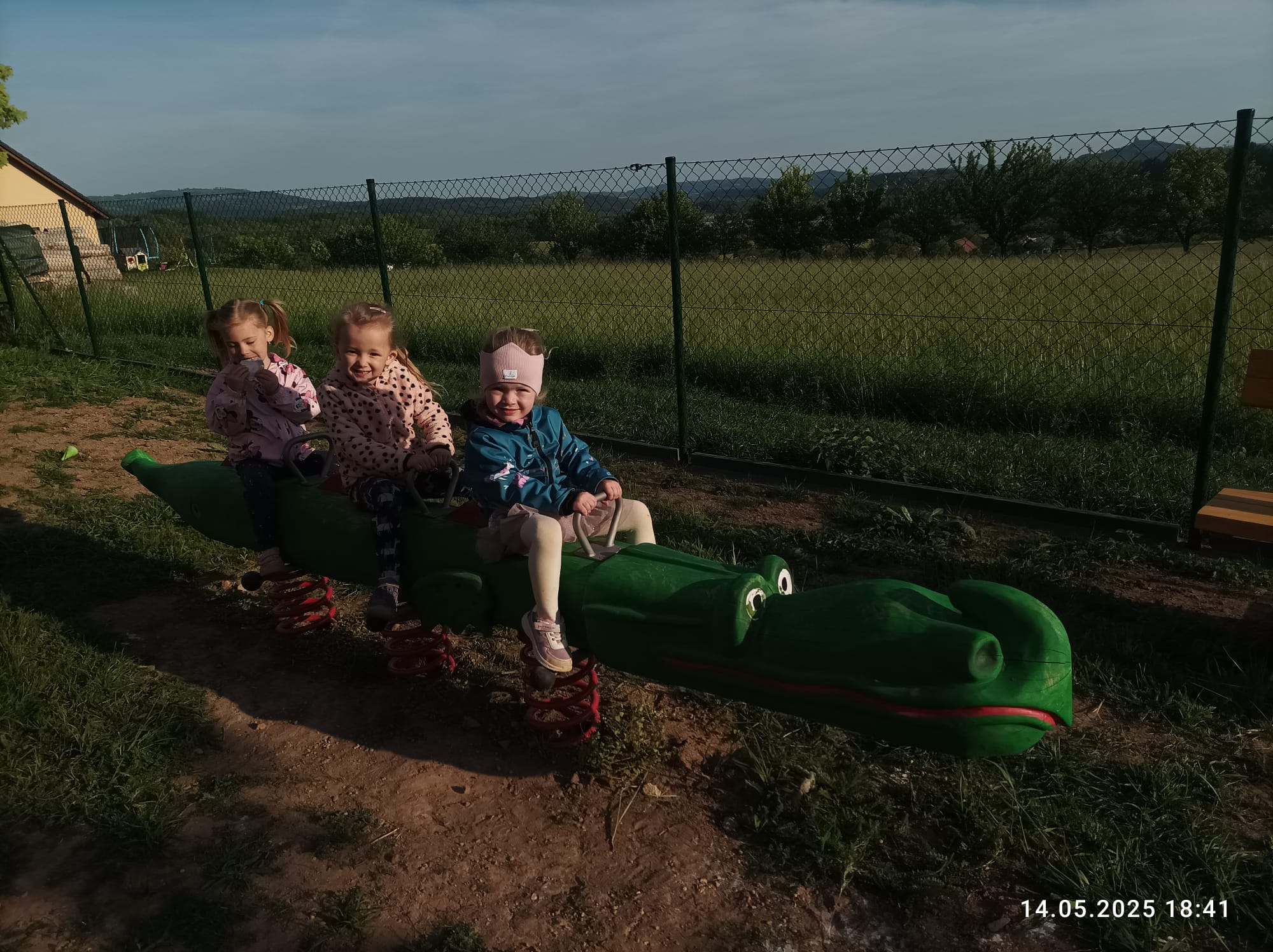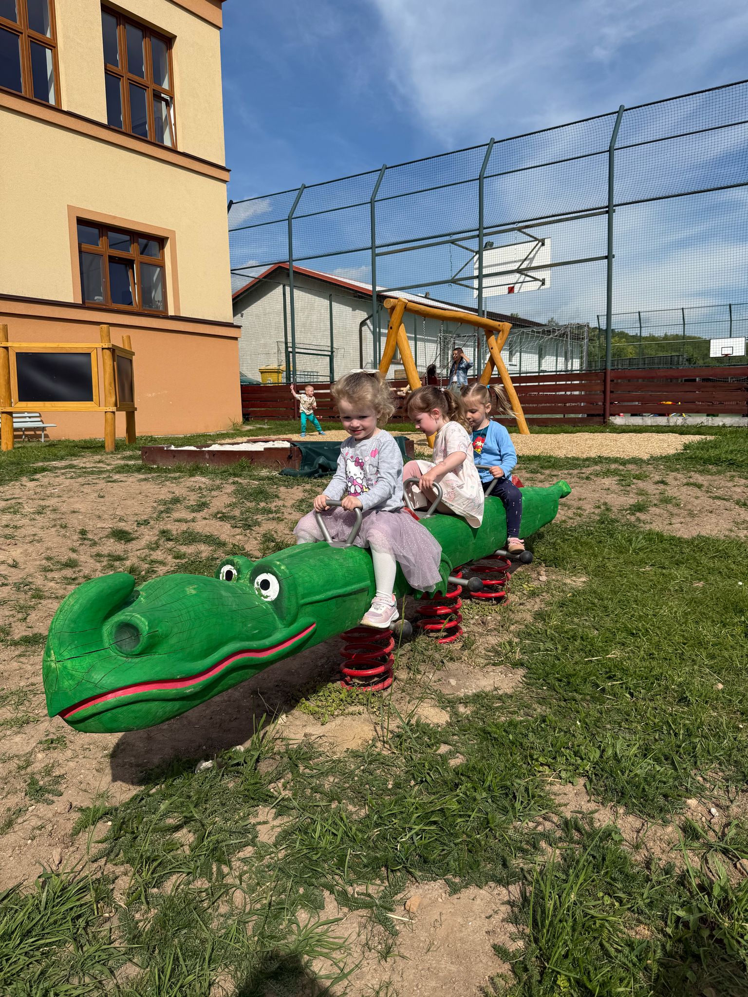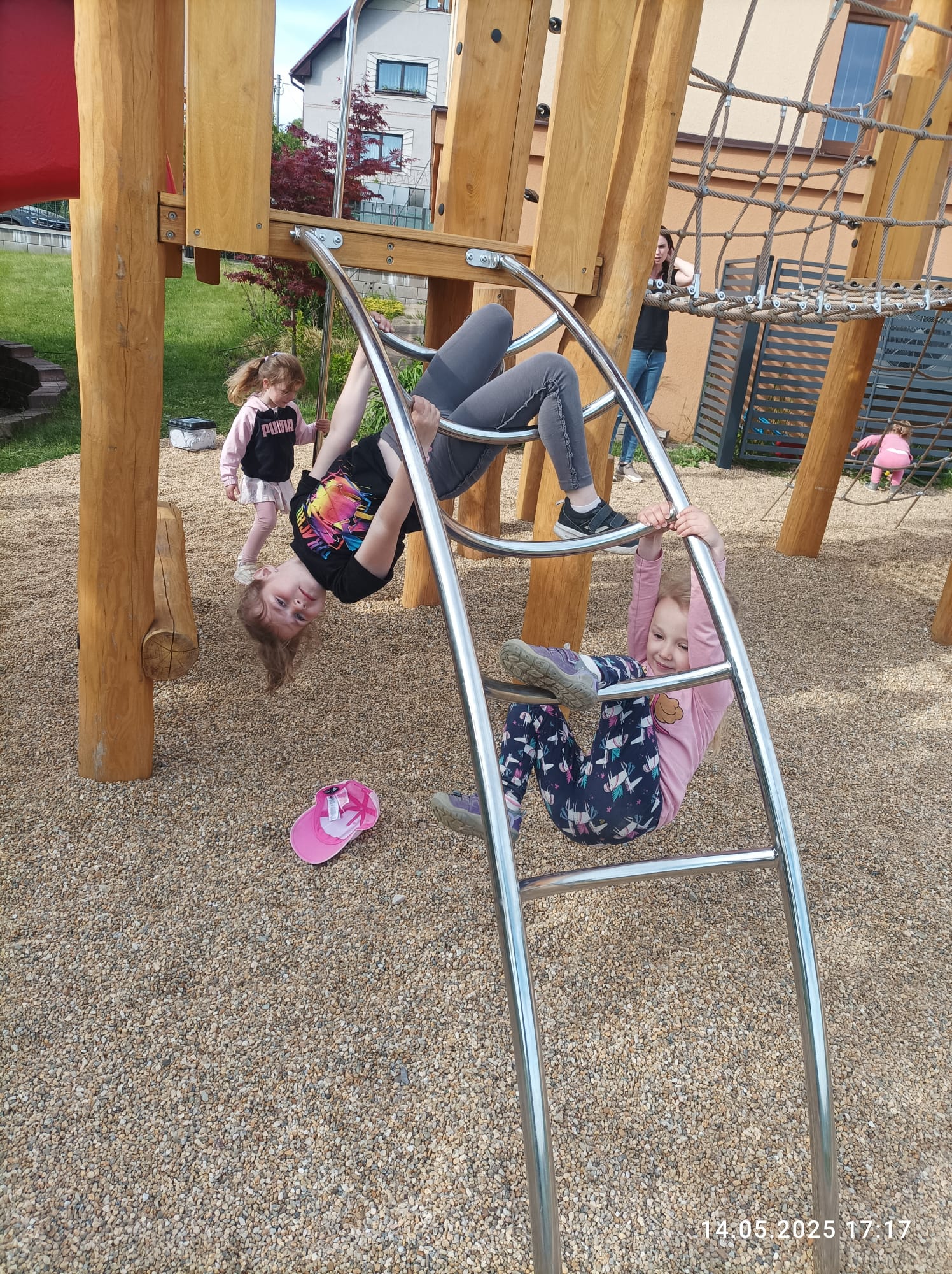 Venku nás to baví a trávíme tam každou možnou chvíli, co nám počasí dovolí. Jistě jste si všimli, že se buduje nové hřiště nejen pro naše děti. Prosíme Vás o trpělivost a ohleduplnost. Dorovnané plochy jsou čerstvě oseté trávou. Prosíme pohybujte se při návštěvě hřiště mino tyto plochy. Děkujeme!